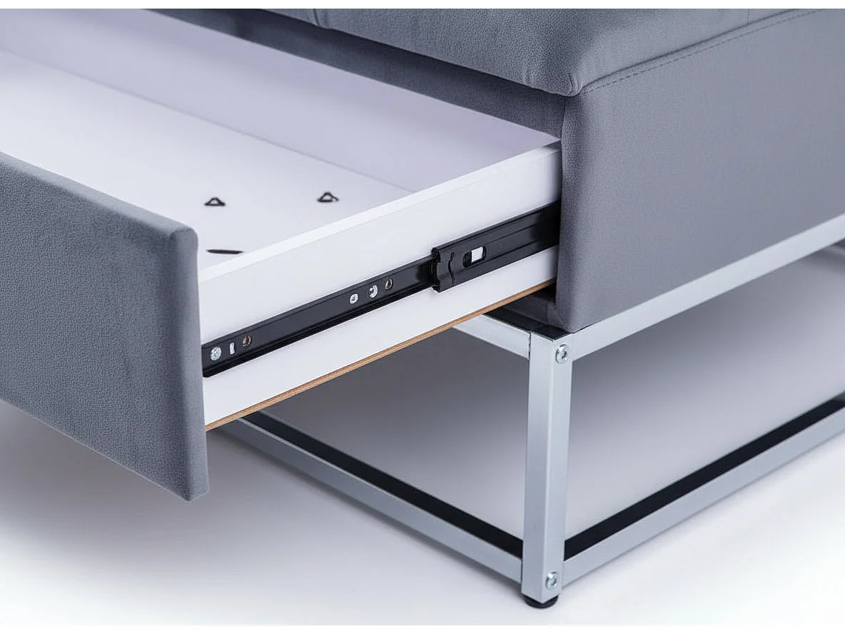Pouf Coffre TIROIRS Carré Plateau Velours Capitonné Gris 80x80x43cm 2 Tiroirs