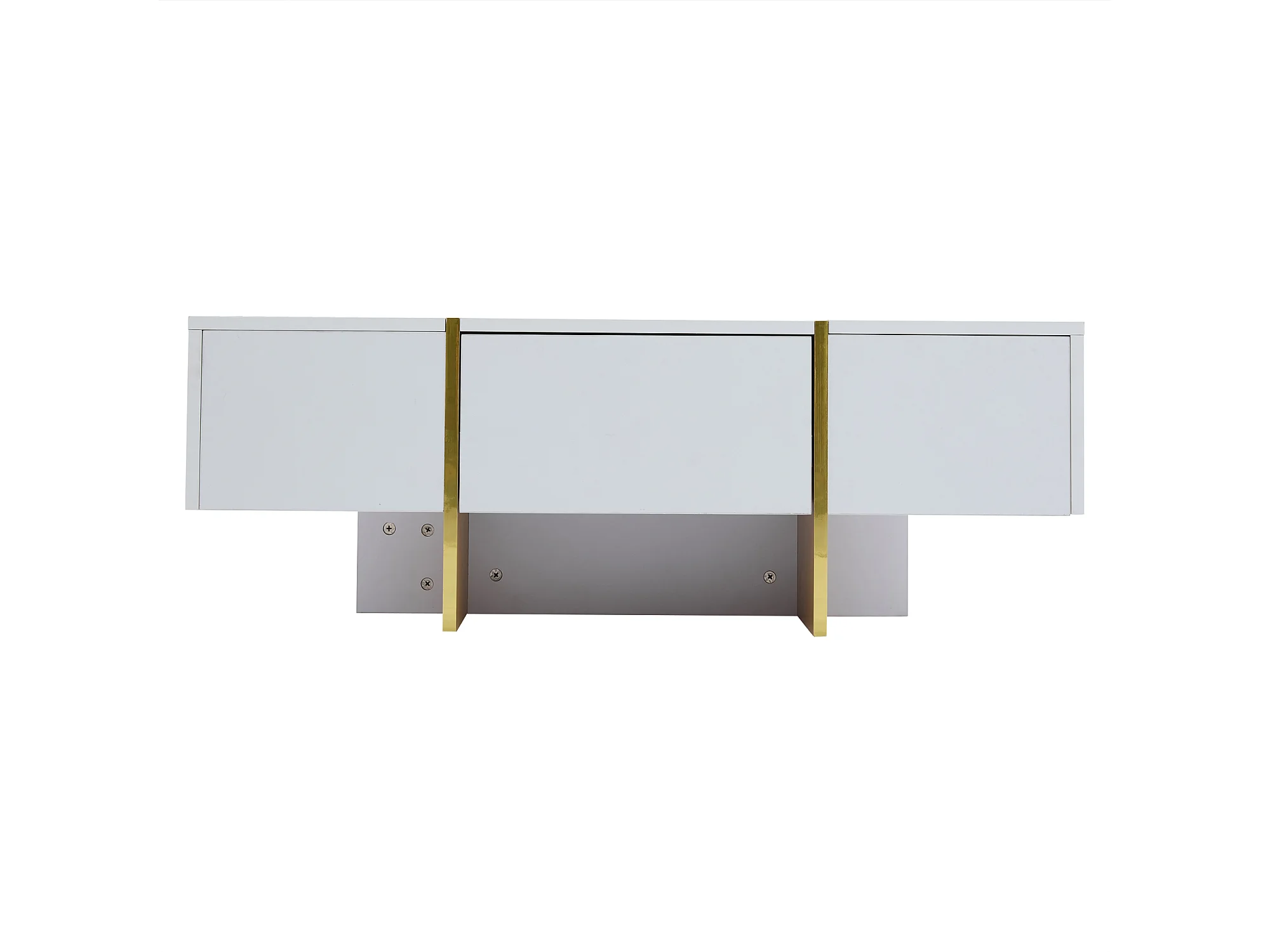 Table basse rectangle avec 2 tiroirs et 2 compartiments cachés, blanc et doré