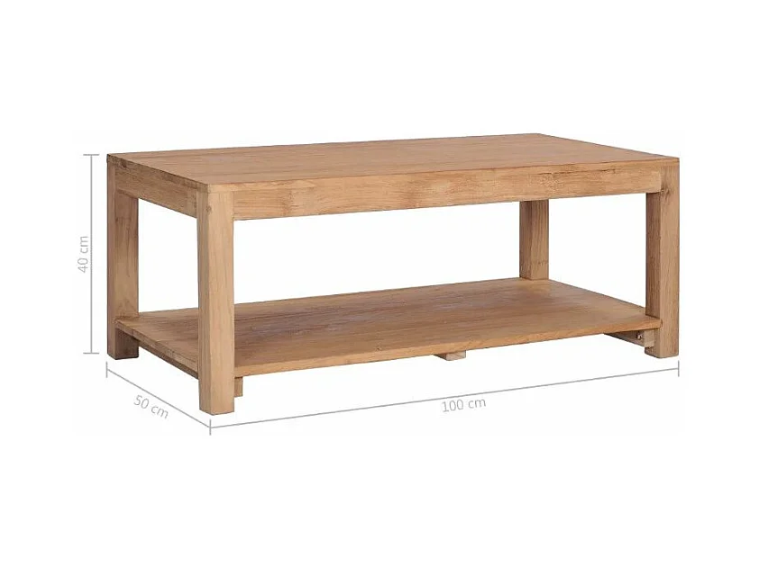 Table basse rectangulaire 2 plateaux teck massif clair Jarko