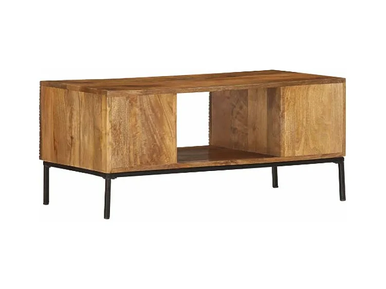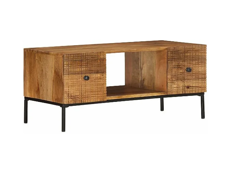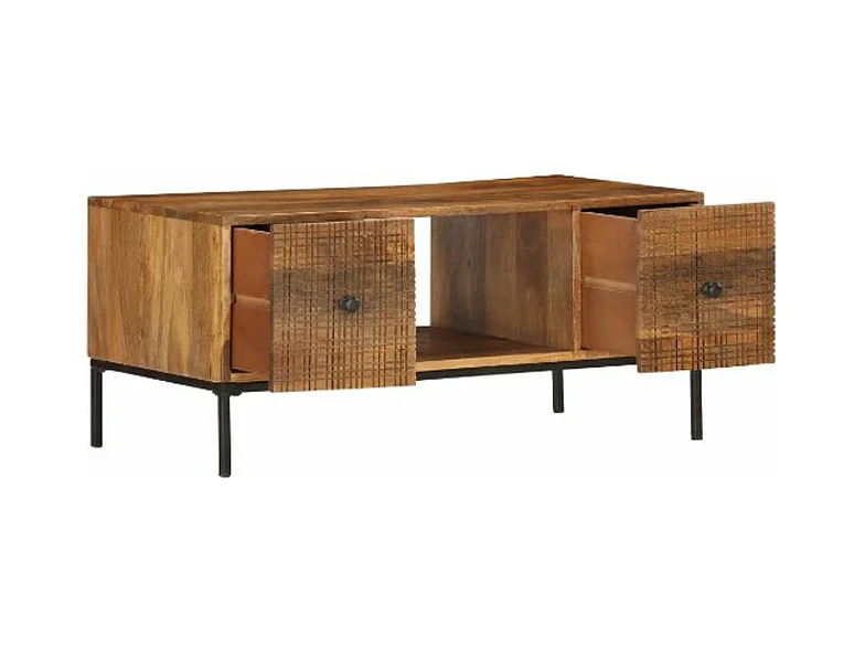 Table basse rectangulaire 2 portes manguier massif et métal noir Grey