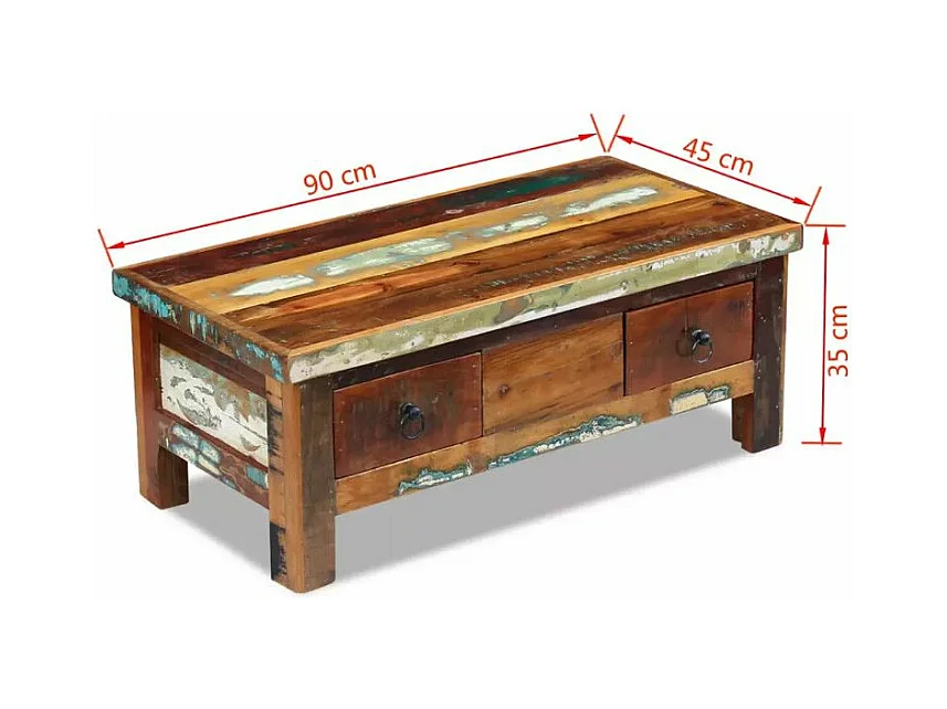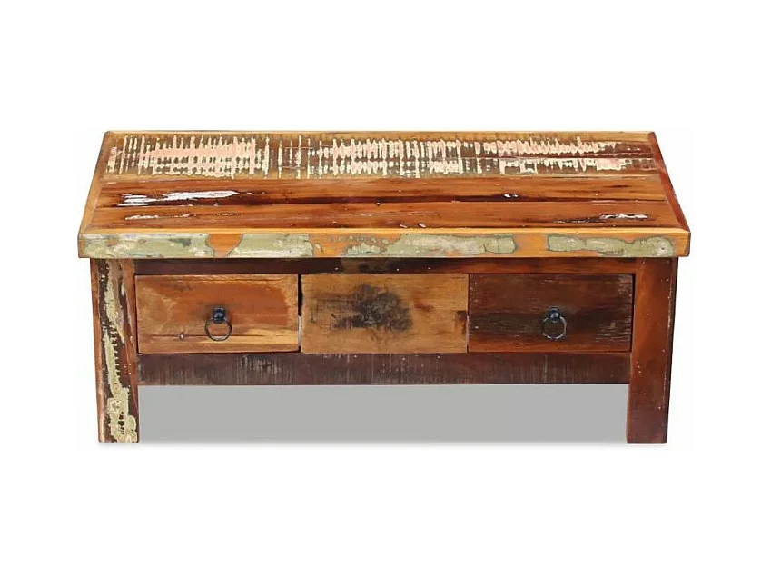 Table basse rectangulaire 2 tiroirs bois massif recyclé Lau