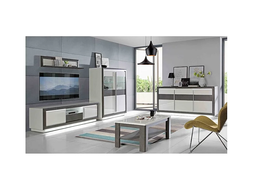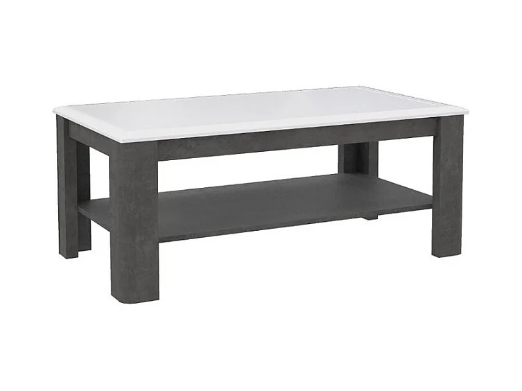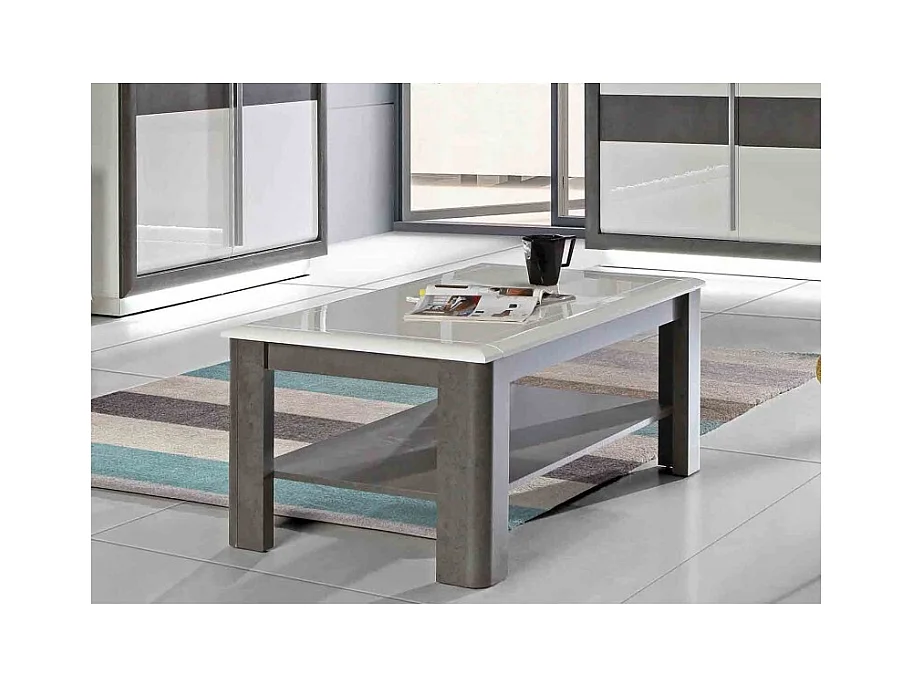 Table basse rectangulaire 110 cm blanc laqué et décor gris - CALVI