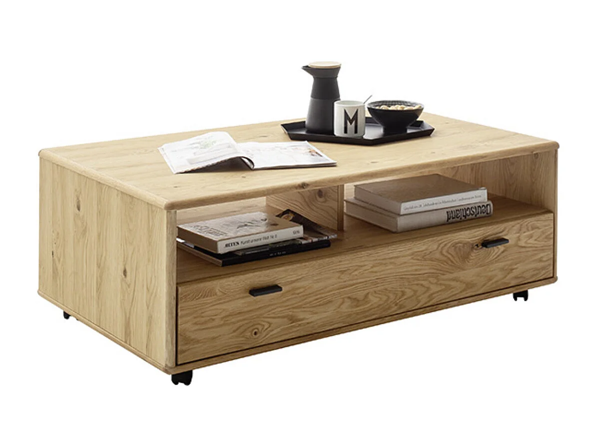 Table basse rectangulaire coloris chêne sauvage huilé - Longueur 115 x Hauteur 44 x Profondeur 65 cm