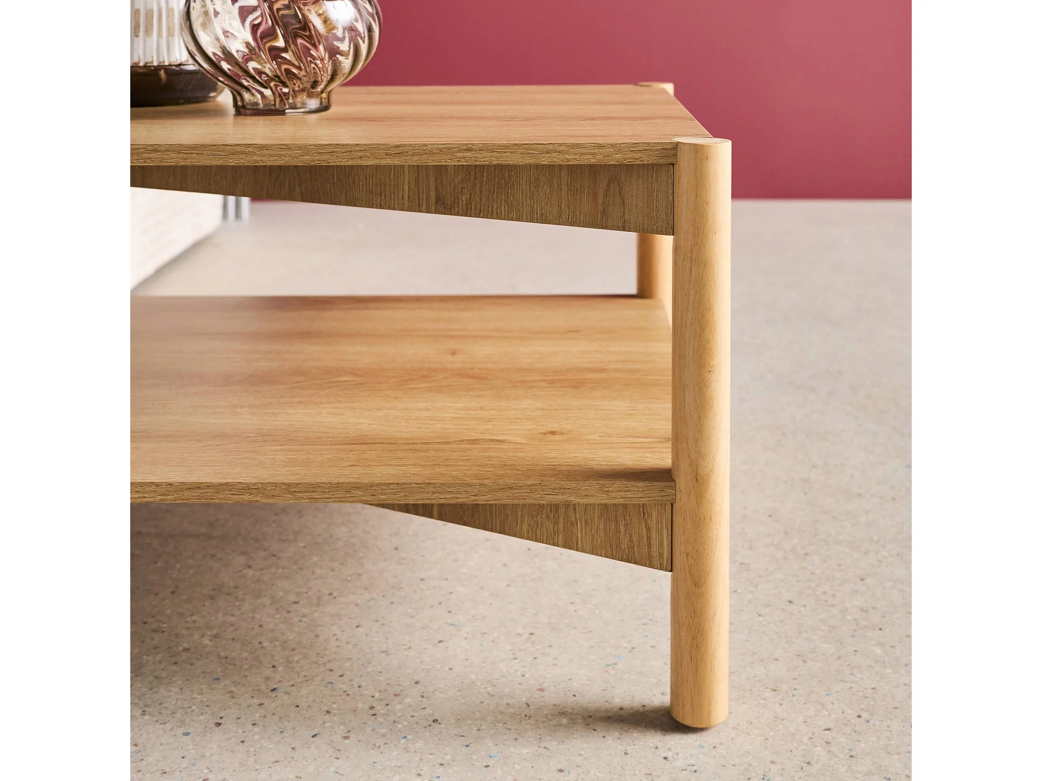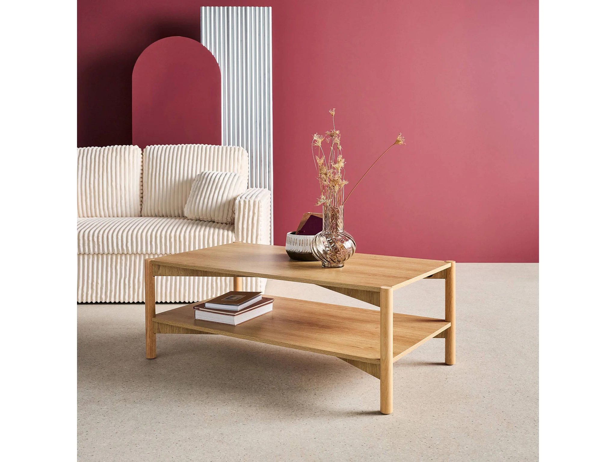 Table basse rectangulaire décor bois double plateau 110cm naturel - Harmony