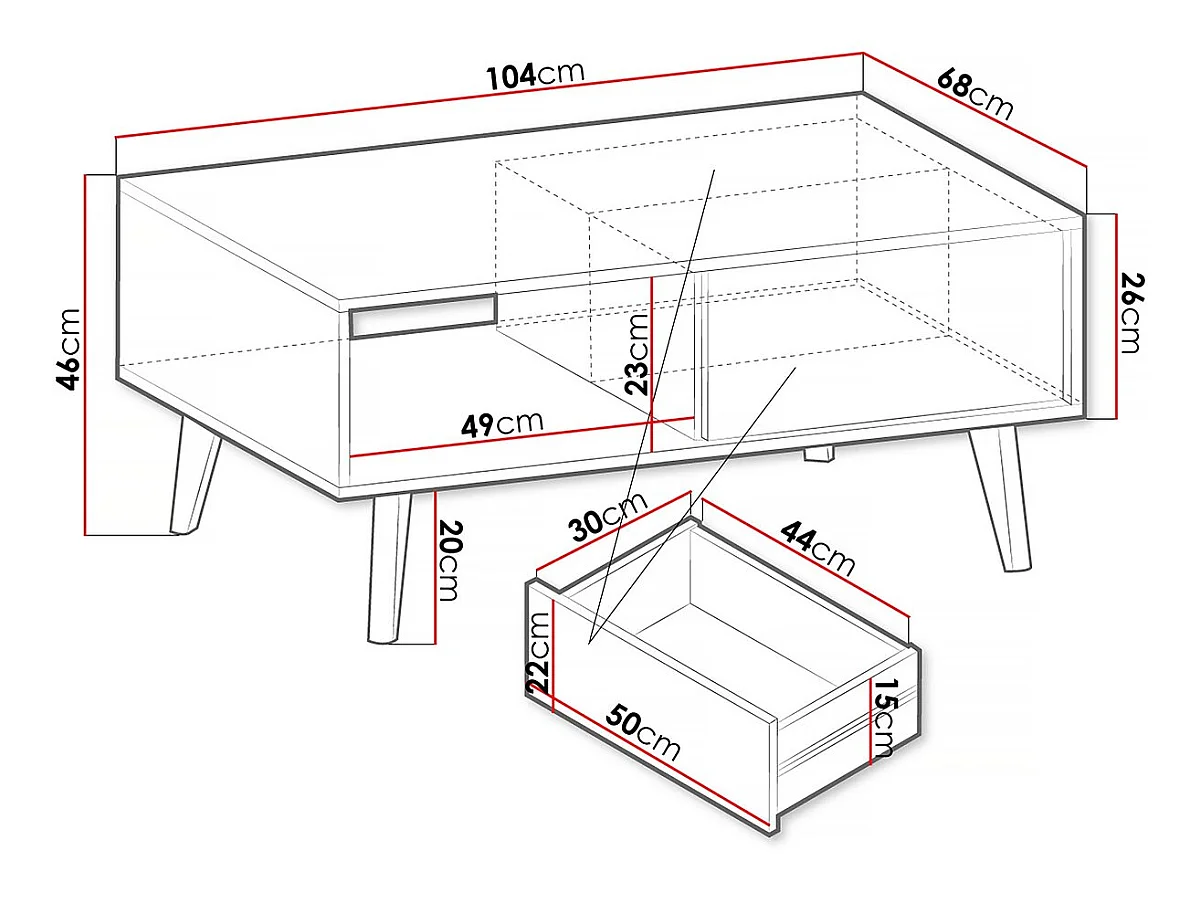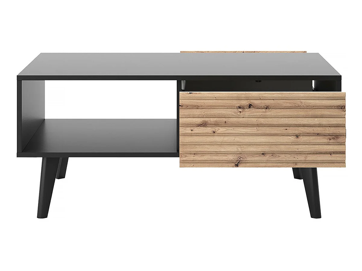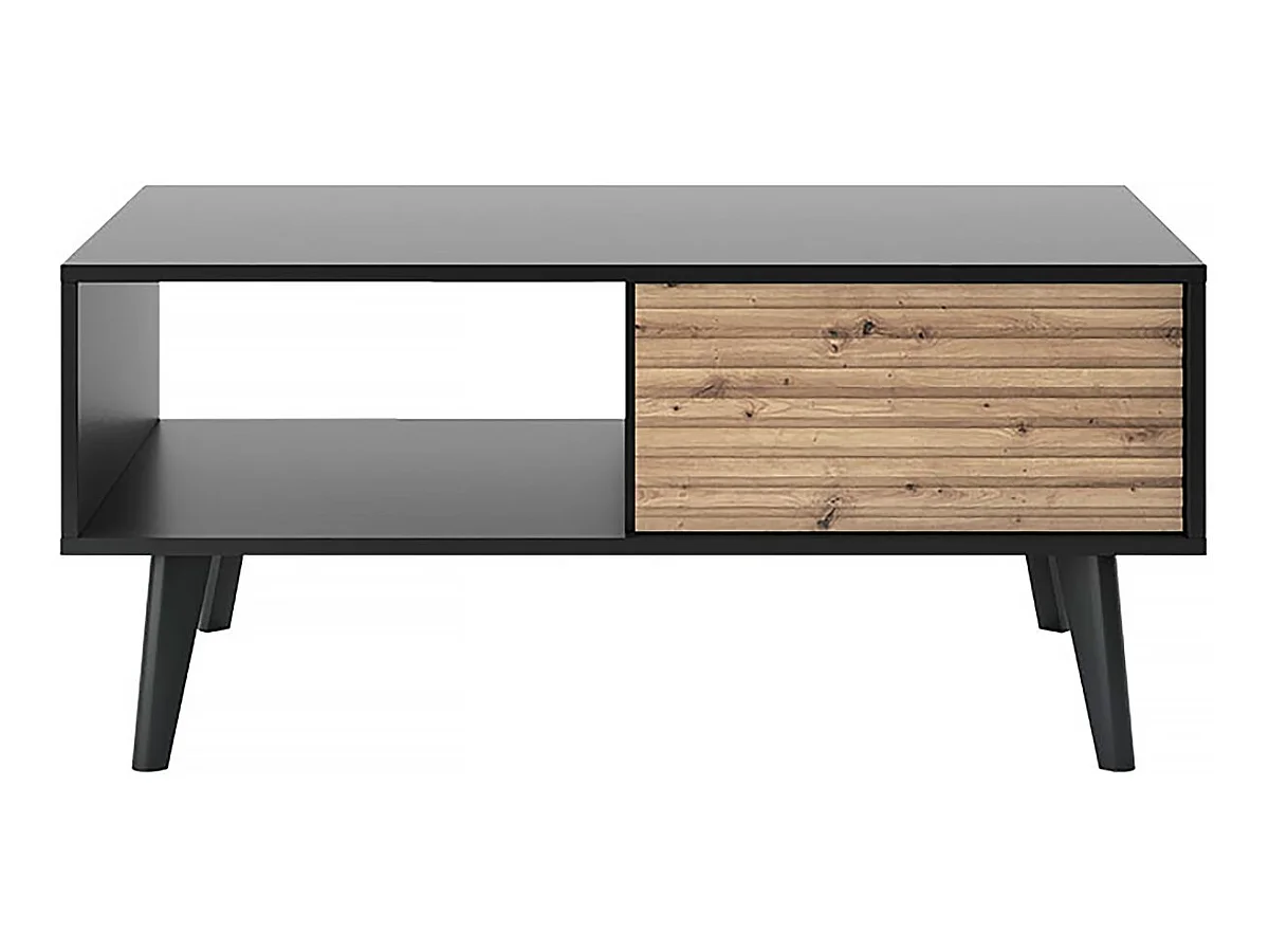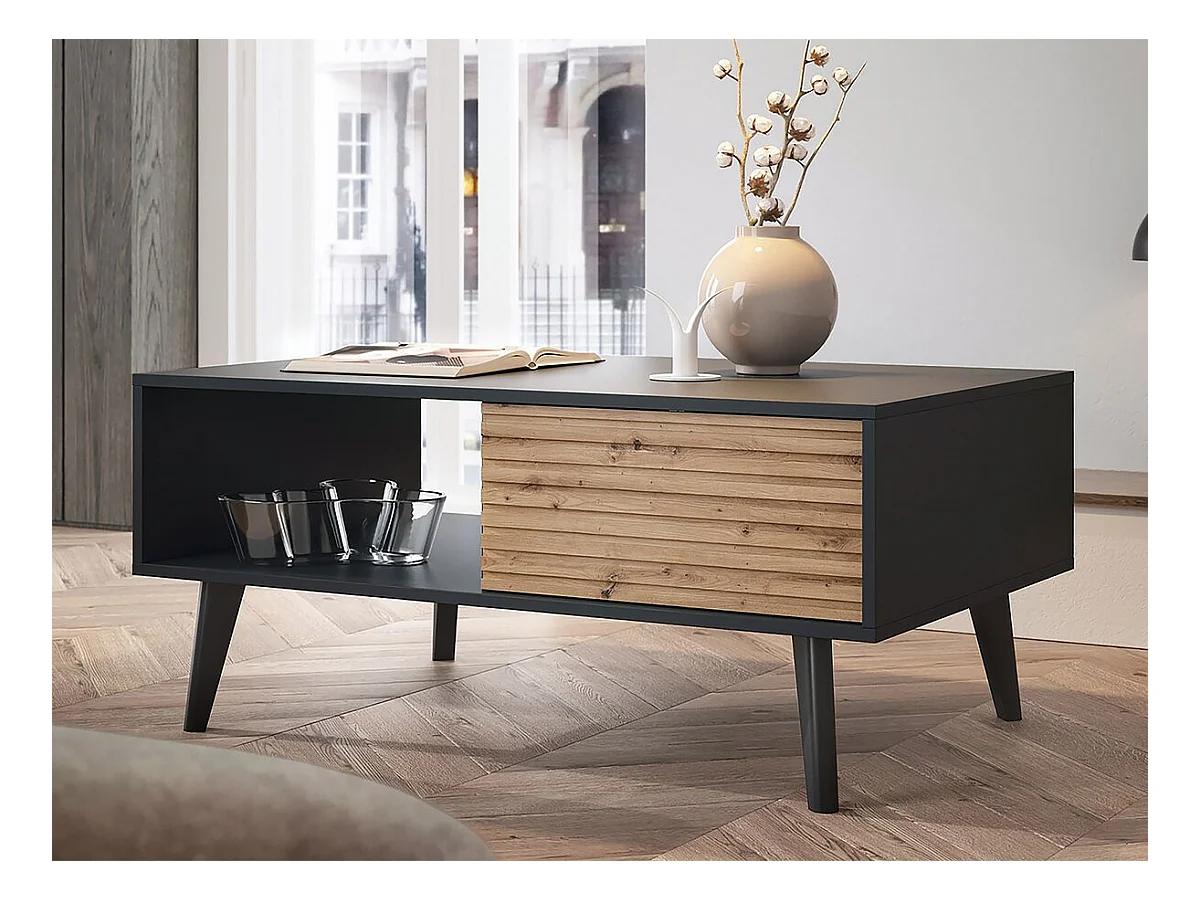 Table basse rectangulaire en bois "Silas" - Noir/Chêne artisanal