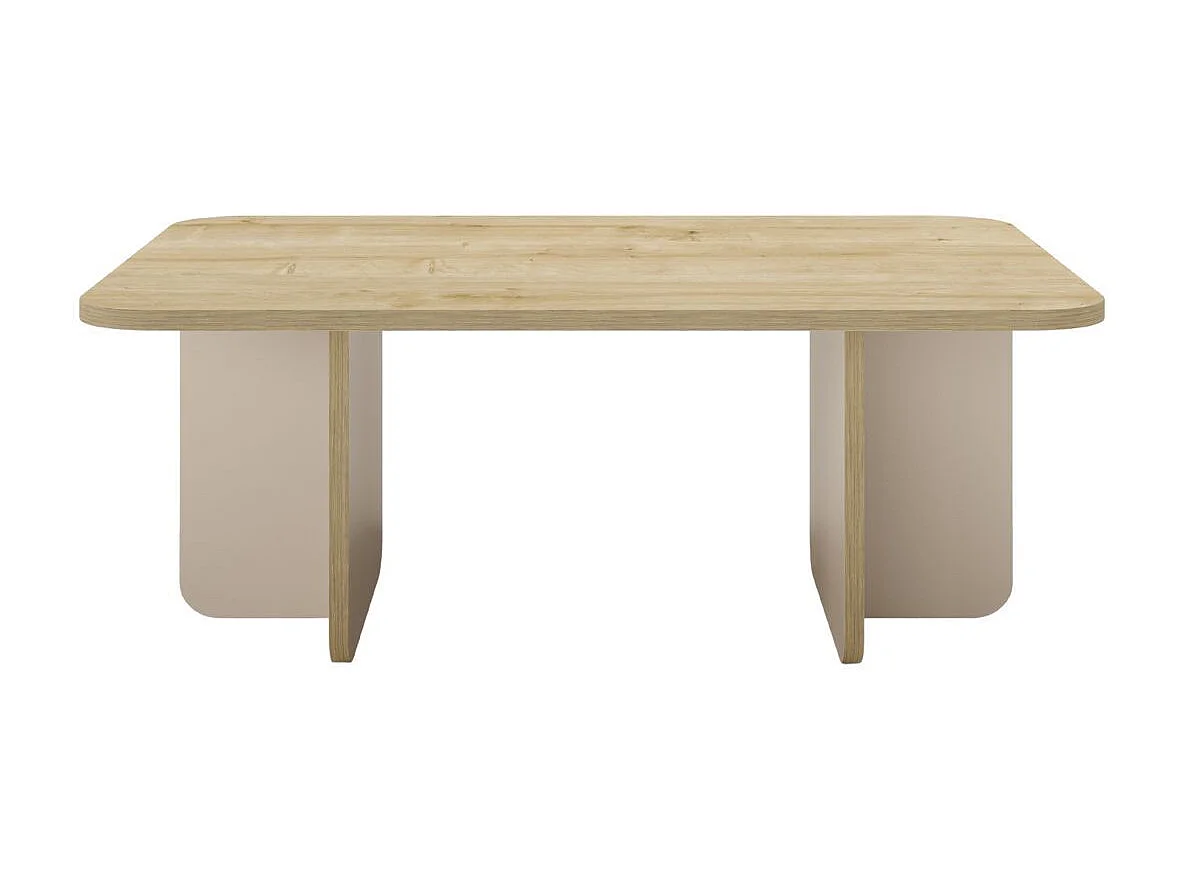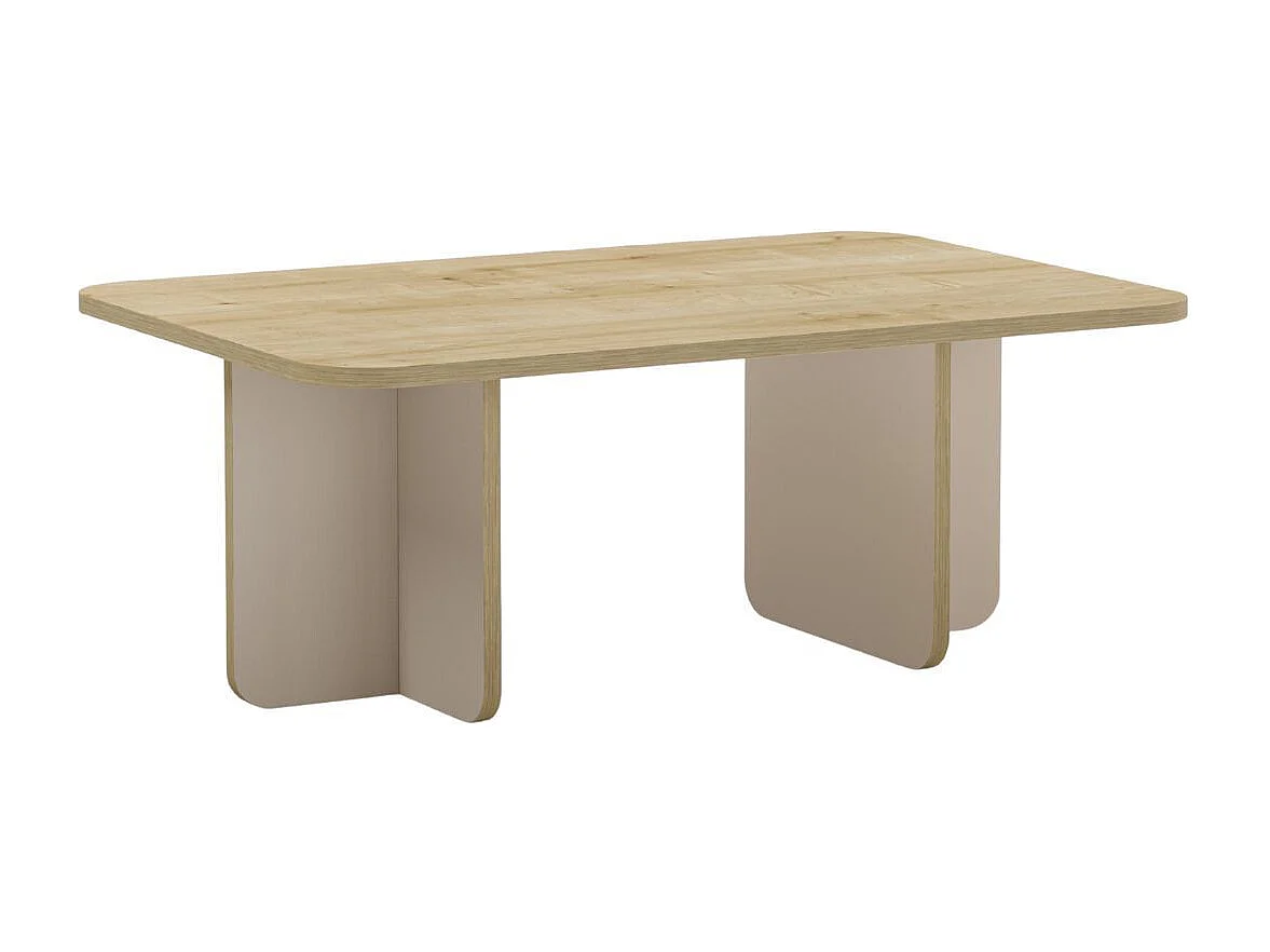 Table basse rectangulaire en mélaminé plateau imitation bois et piètement beige - HESTIA