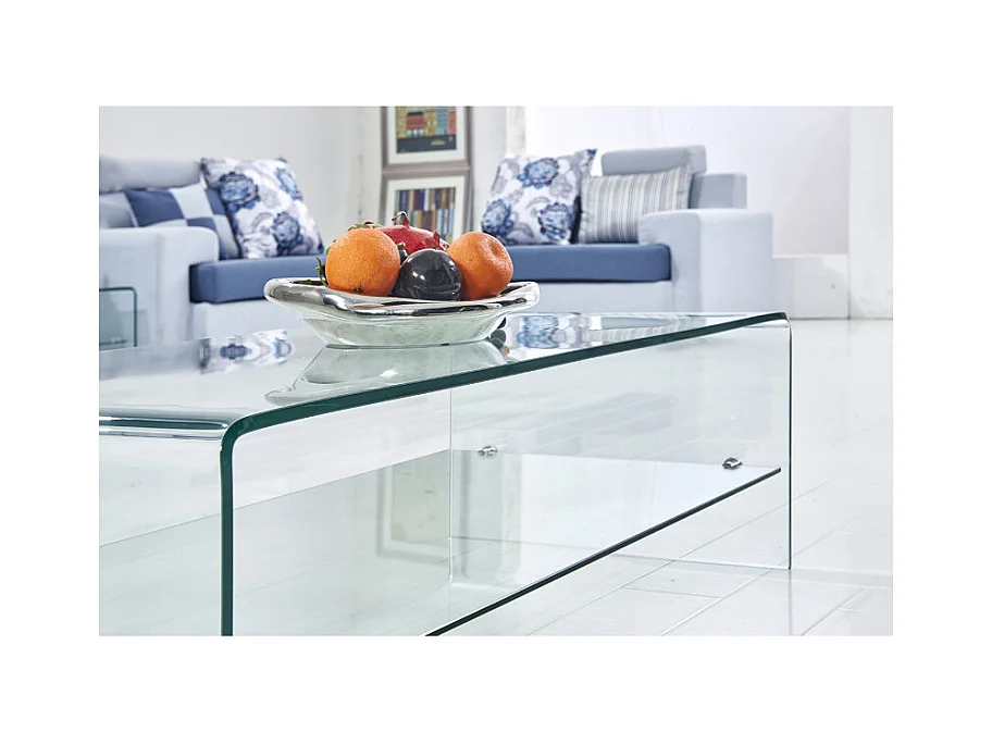 Table basse rectangulaire 110 cm en verre trempé avec étagère - ICE