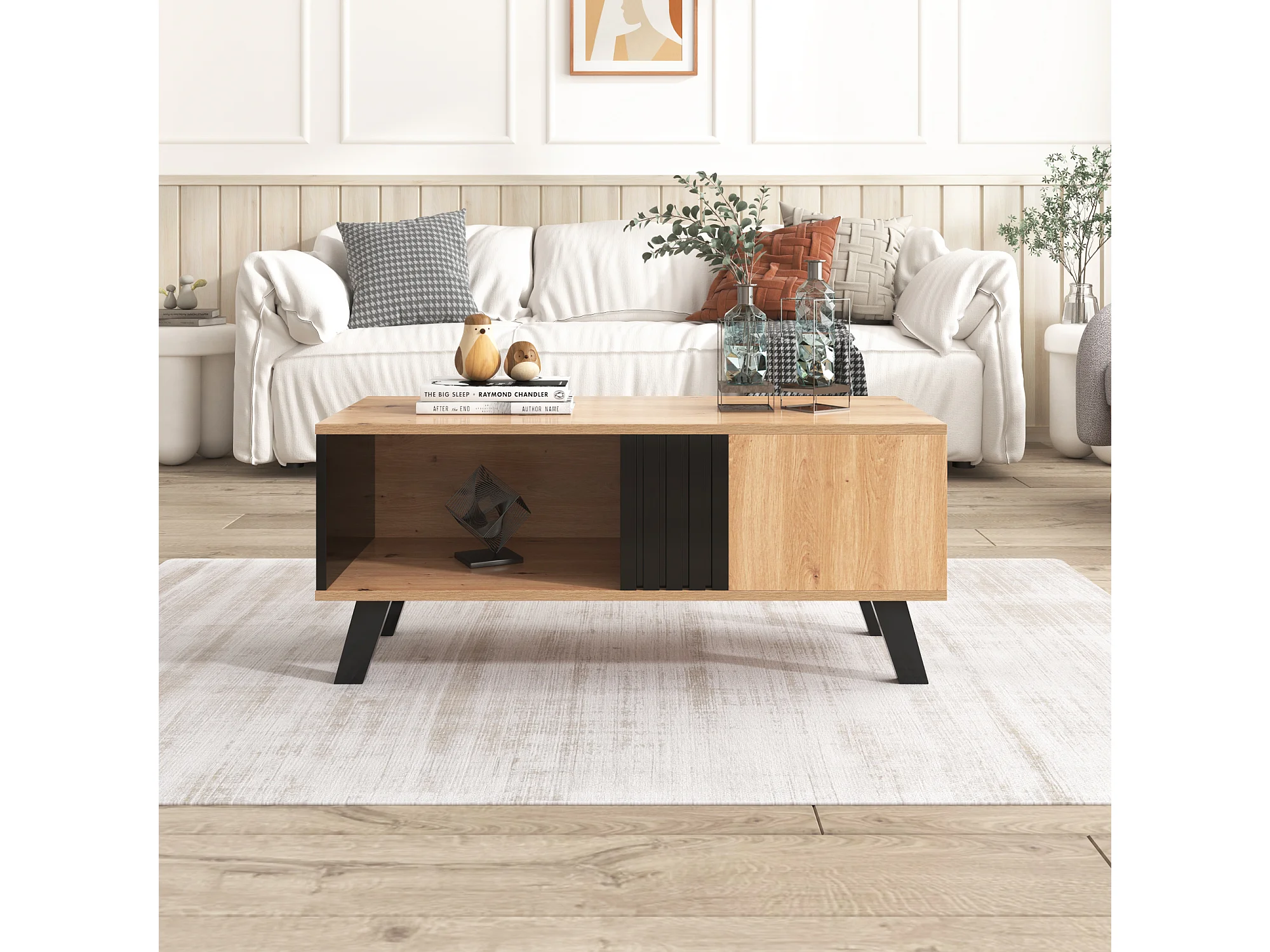 URBAN MEUBLE Table basse rectangulaire industriel effet bois et noir rangement 3 cotés 100x60x43cm
