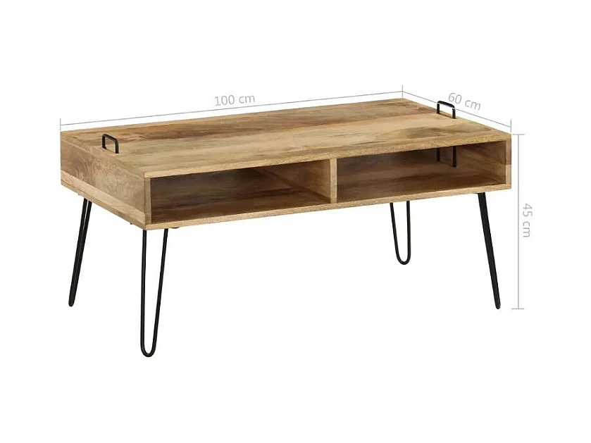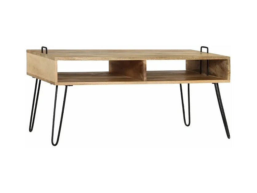 Table basse rectangulaire manguier massif clair et pieds métal noir Soprana