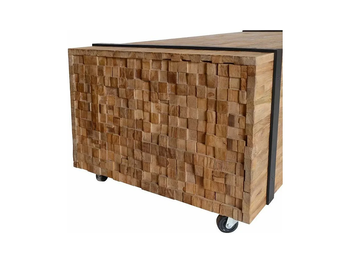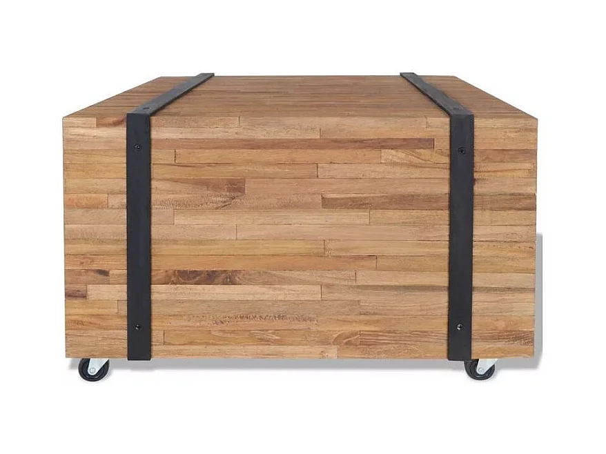 Table basse rectangulaire sur roulettes teck massif clair Anazz