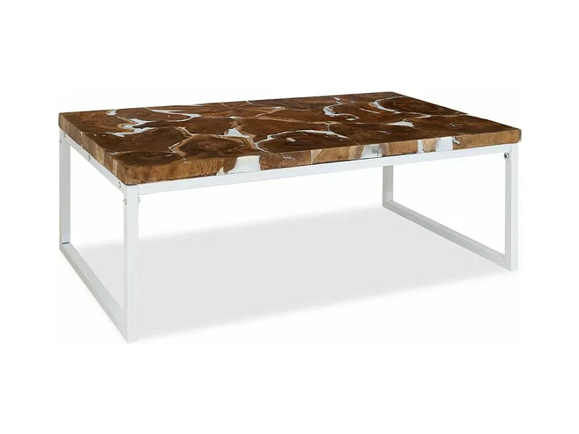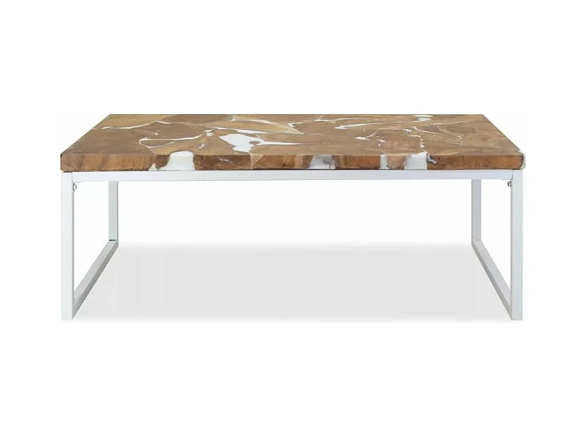 Table basse rectangulaire teck massif clair et pieds métal blanc Mita