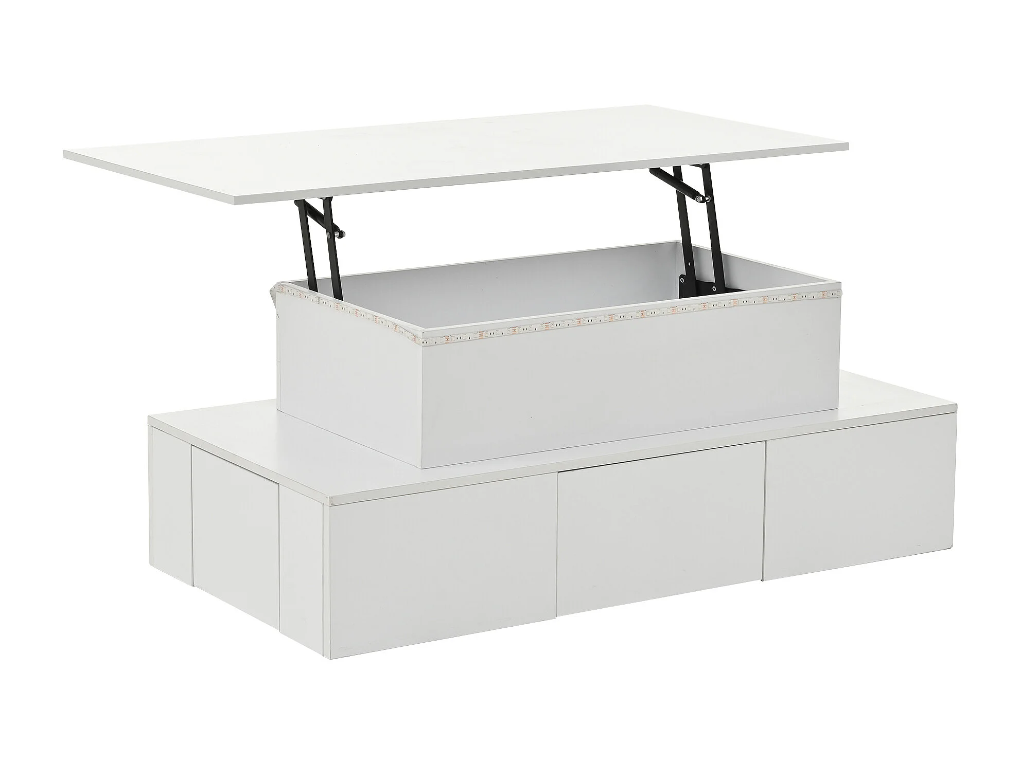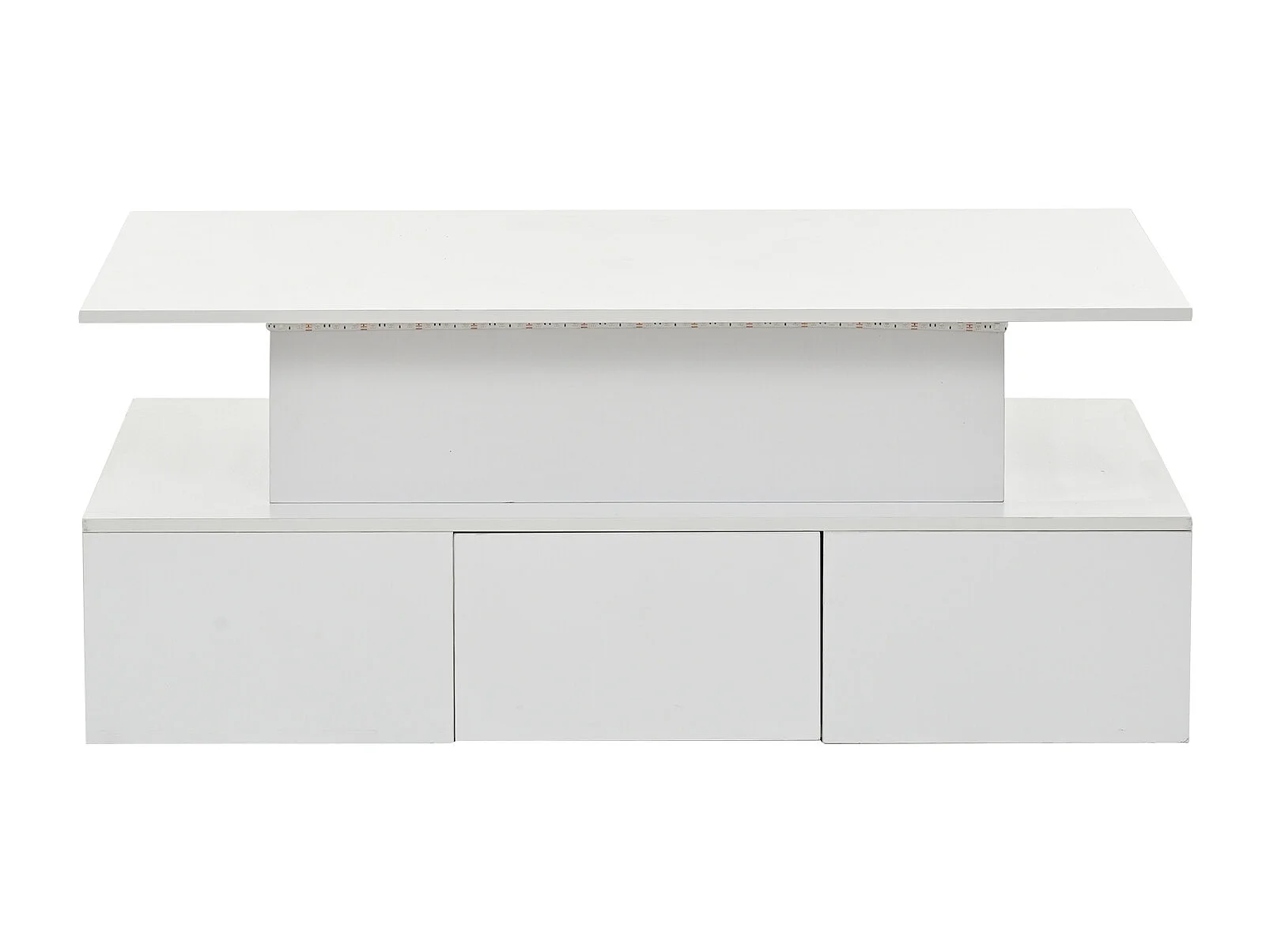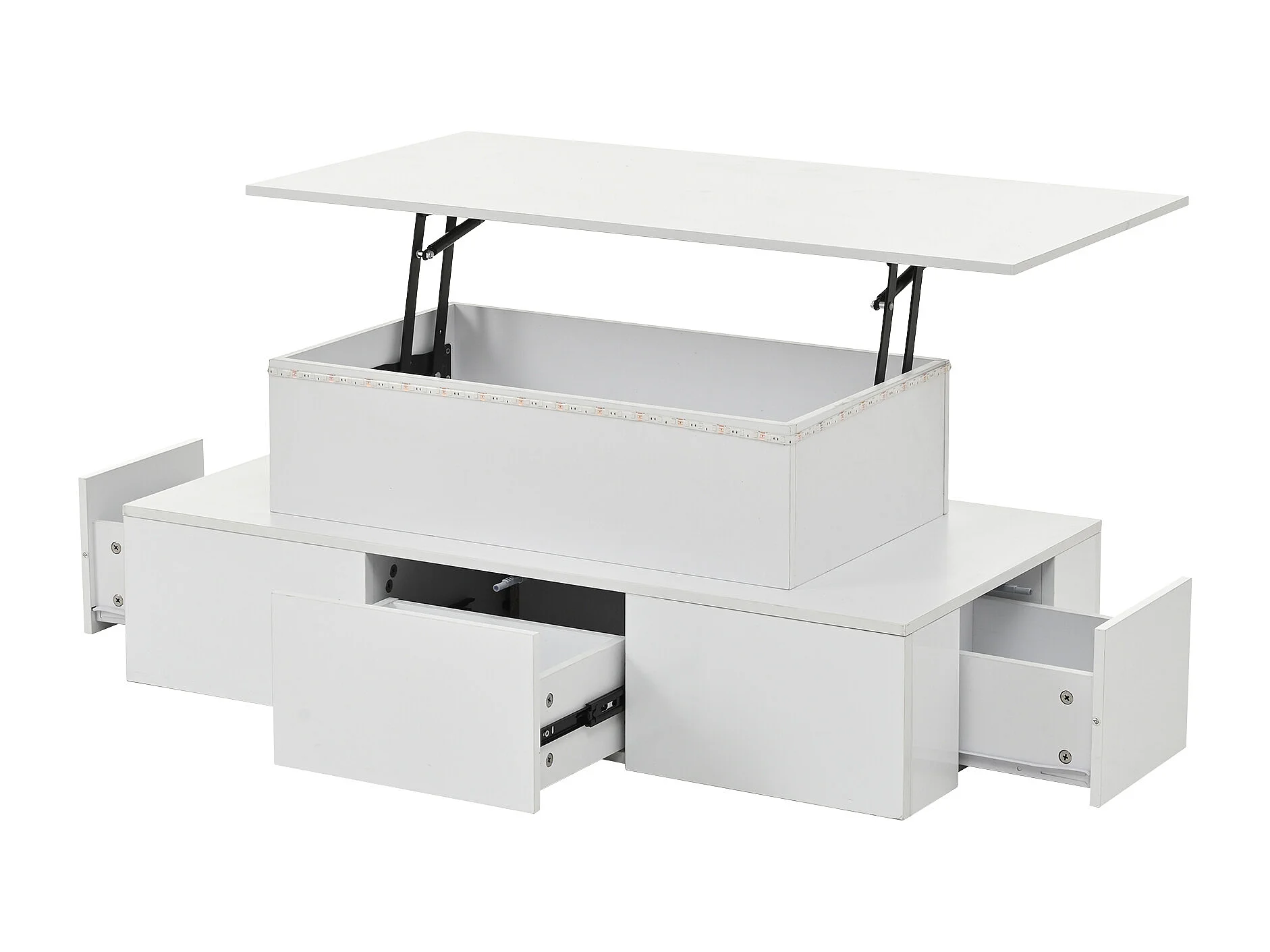 Table basse relevable avec 4 tiroirs, LED - Finition brillante blanc - Bois MDF
