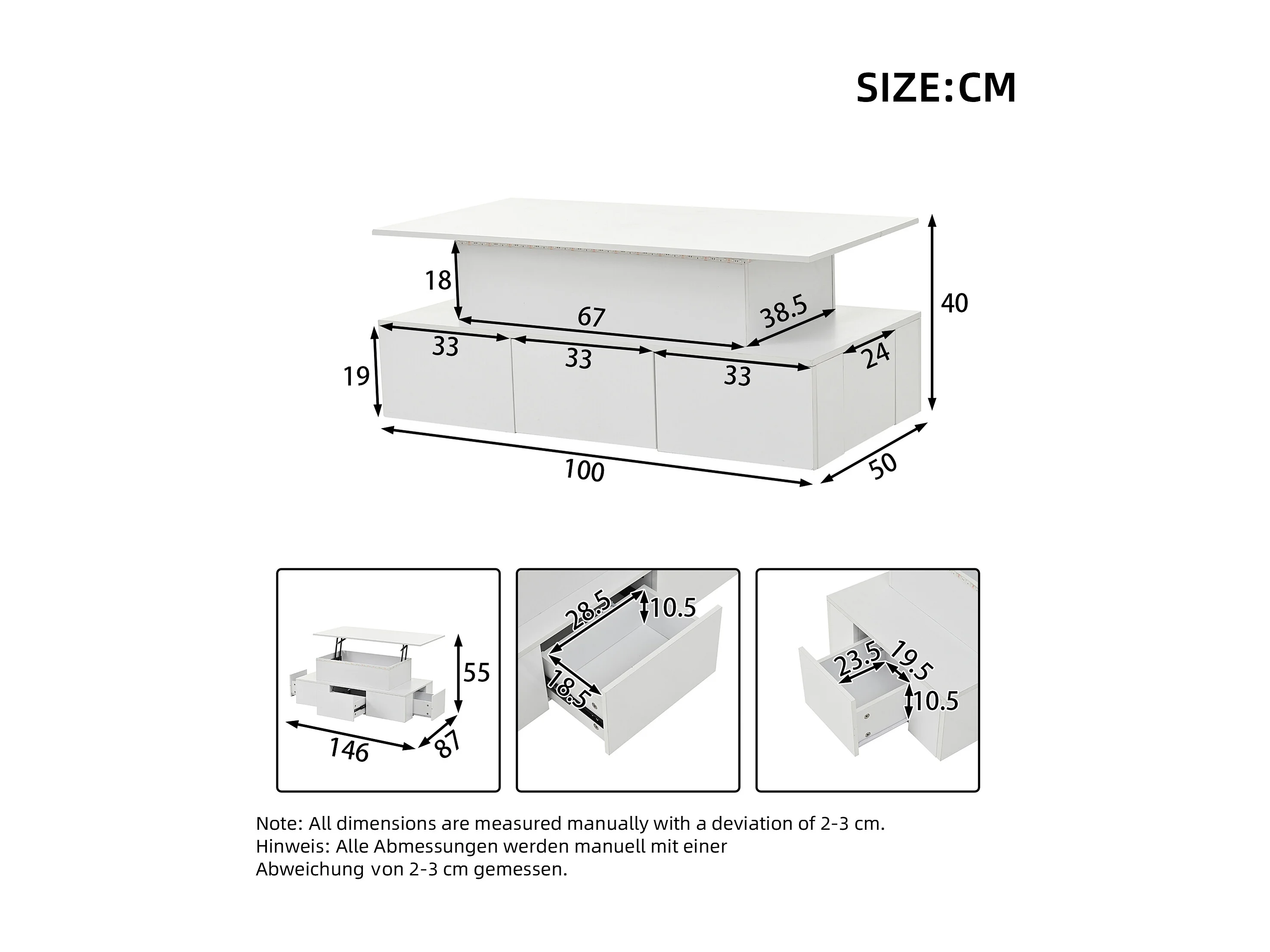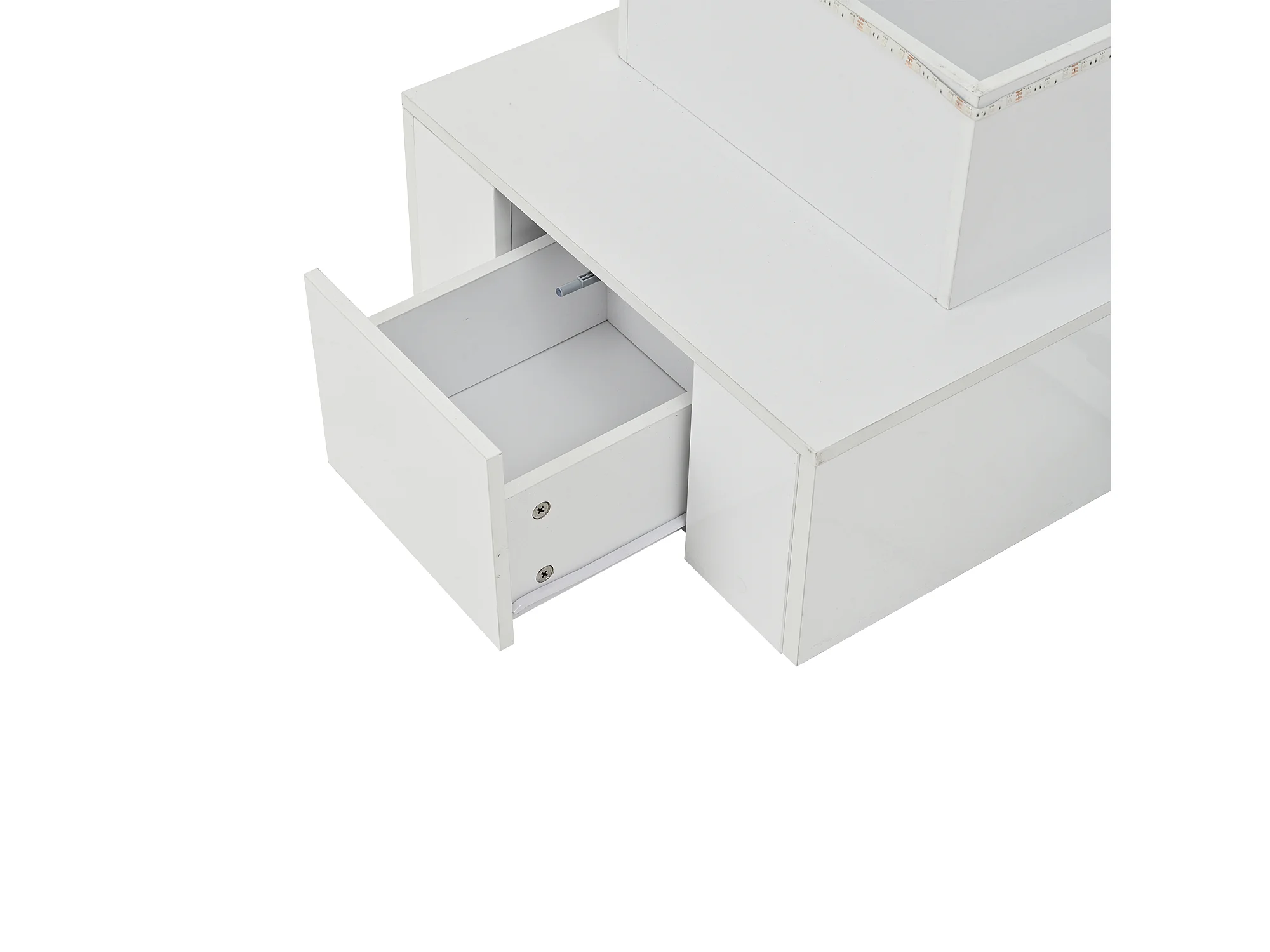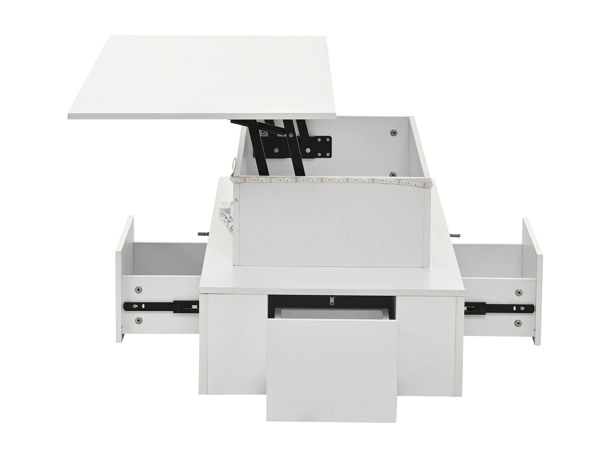 Table basse relevable avec 4 tiroirs, LED - Finition brillante blanc - Bois MDF