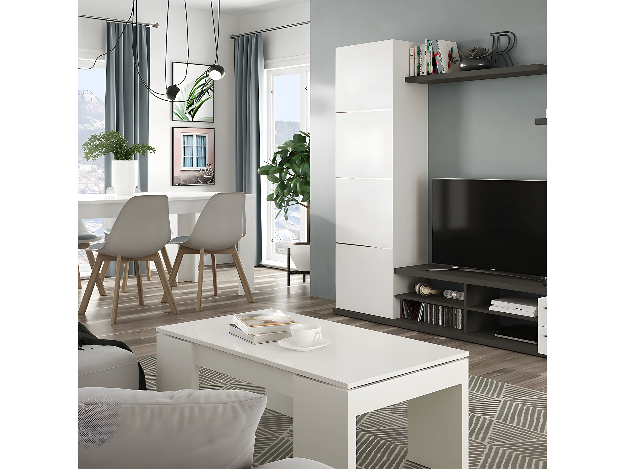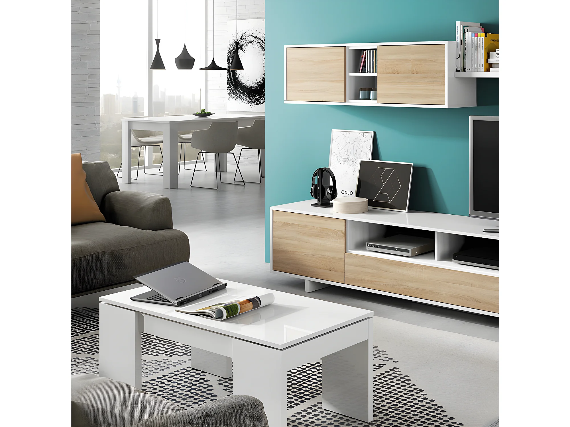 Table basse relevable Blanc brillant - OXNARD - L 100 x l 50 x H 43/54 cm