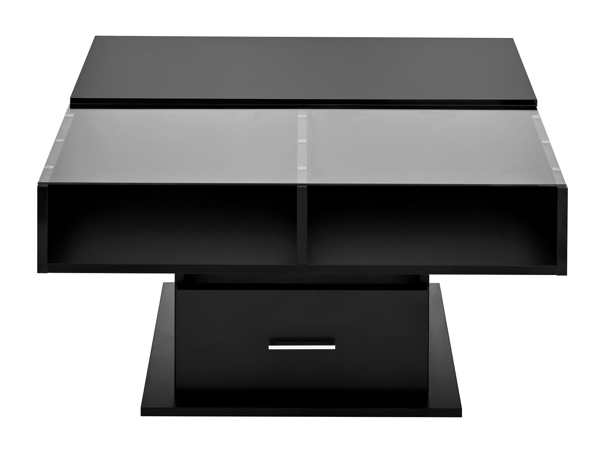 Table basse relevable - 78 x 78 x 45/59 cm - haute brillance avec Leds + 1 tiroir - aggloméré - noir