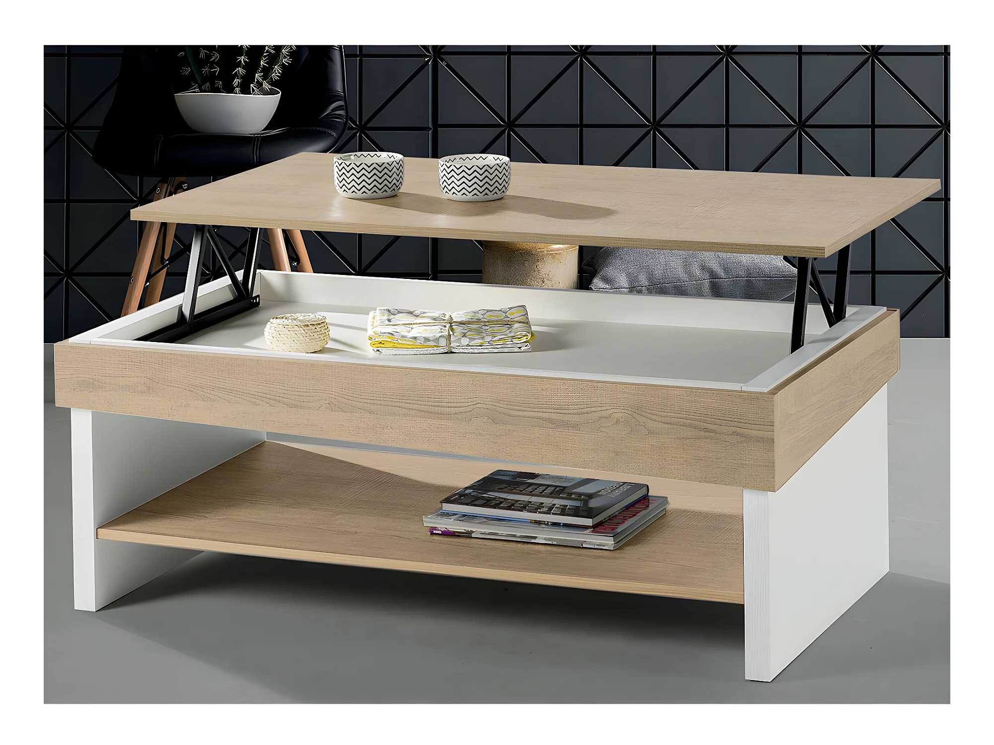 Table basse relevable Chêne blond/Bois blanc - BERLIOSE