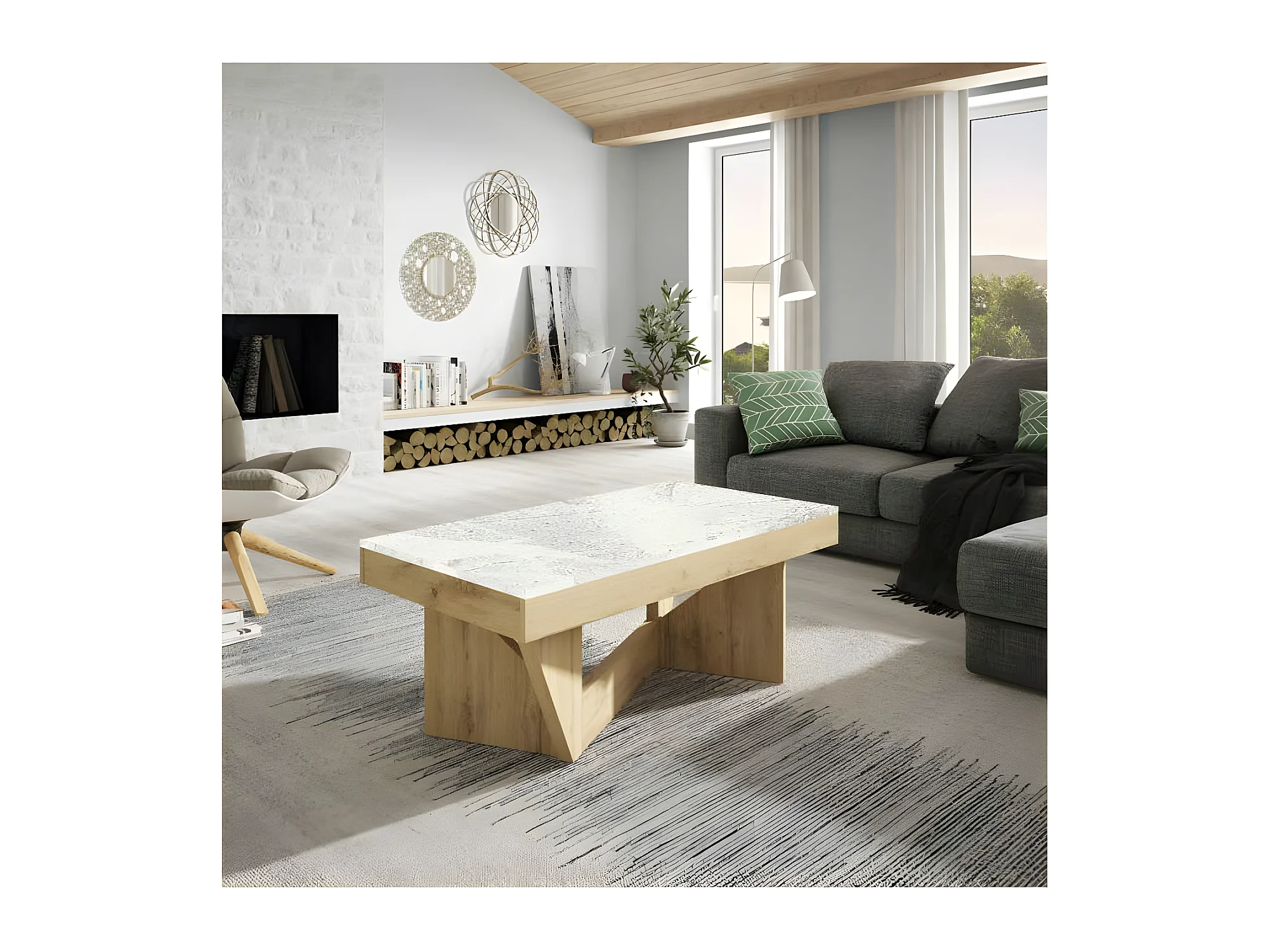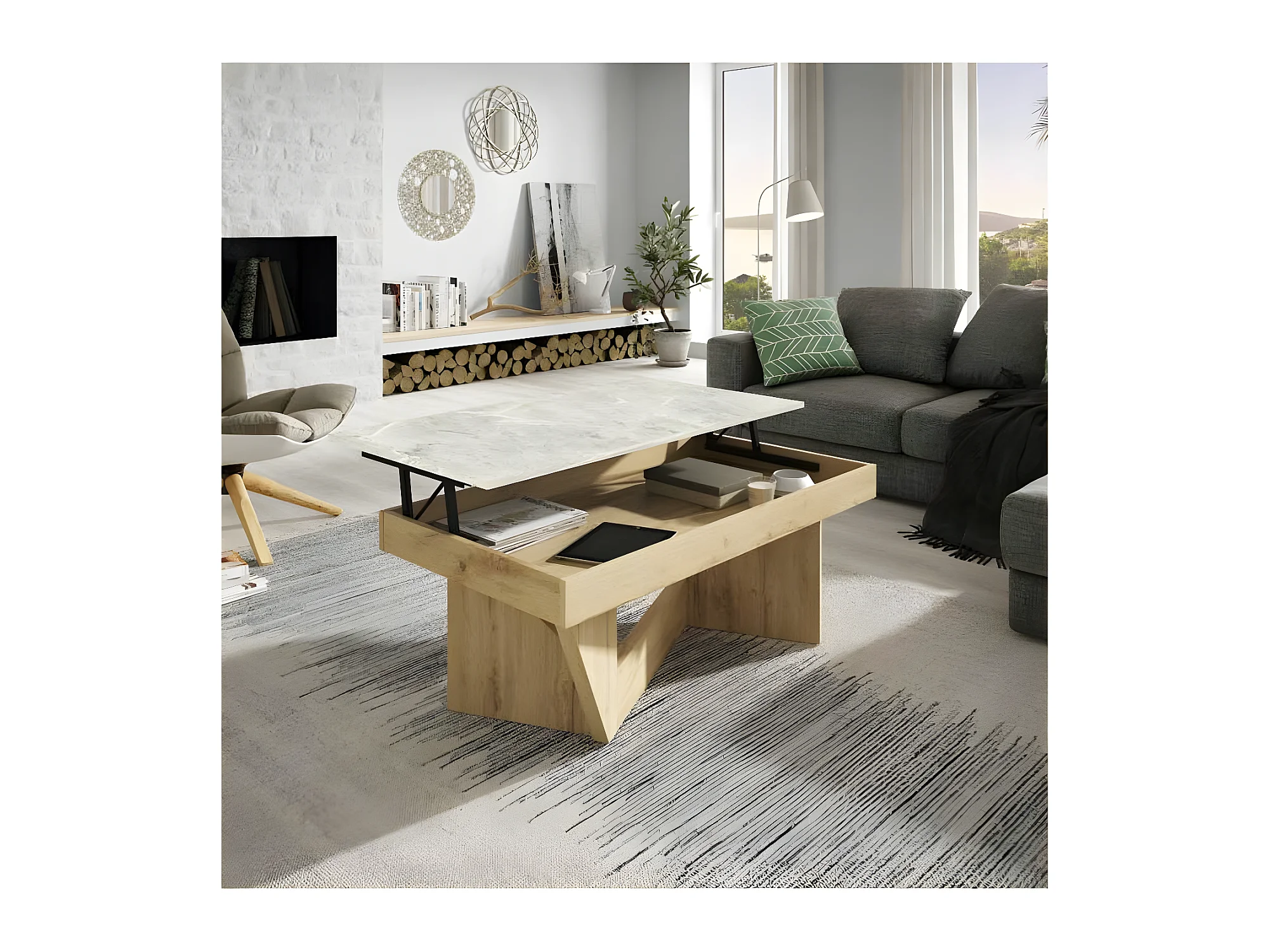 Table basse relevable Chêne blond/Marbre blanc et gris - POPLO