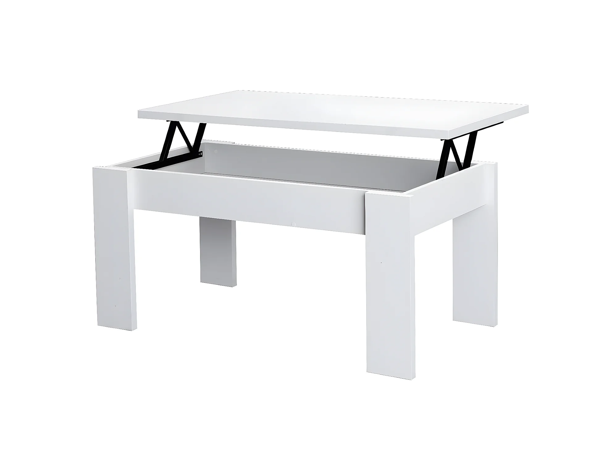 Table basse relevable coloris blanc - longueur 105 x profondeur 55 x hauteur 51/63 cm