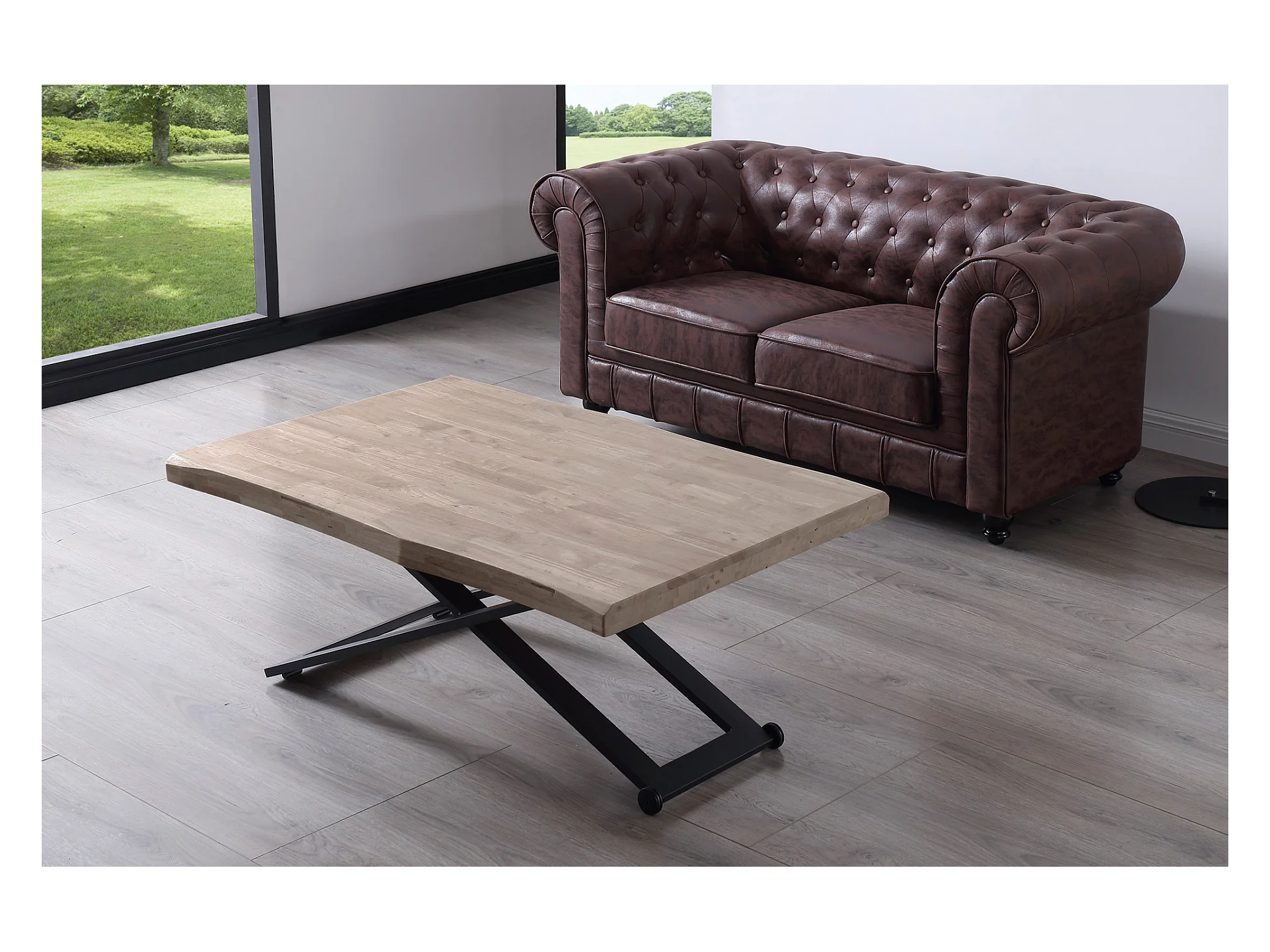 Table basse relevable de salon en bois de chêne miel avec pieds en métal noir - Longueur 120 x Profondeur 80 x Hauteur 49-76 cm