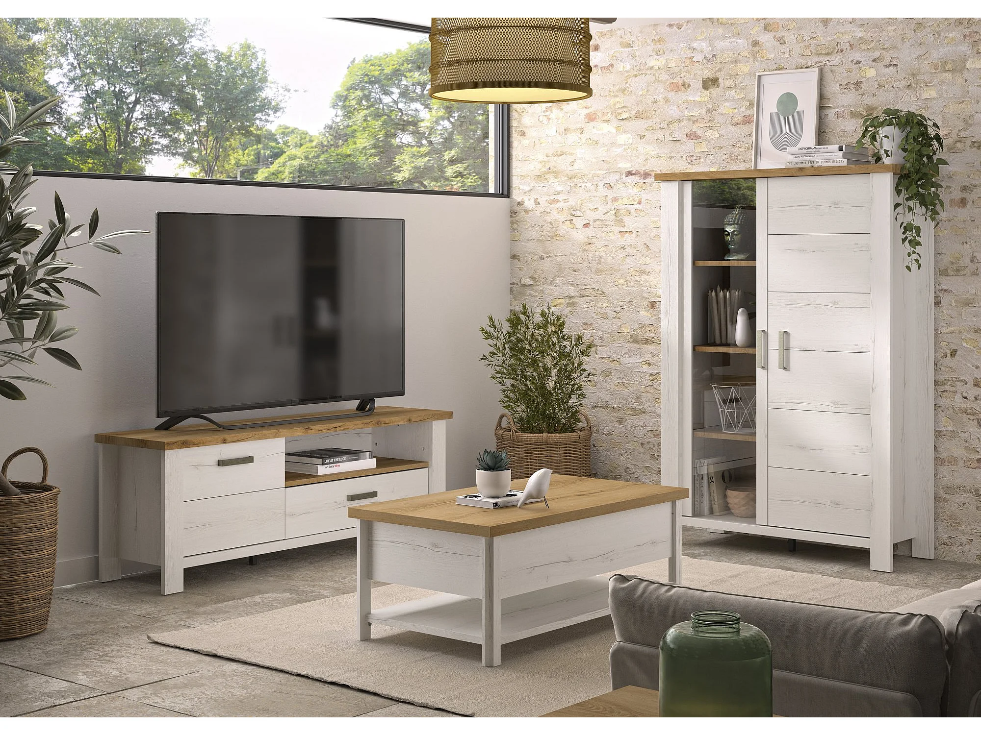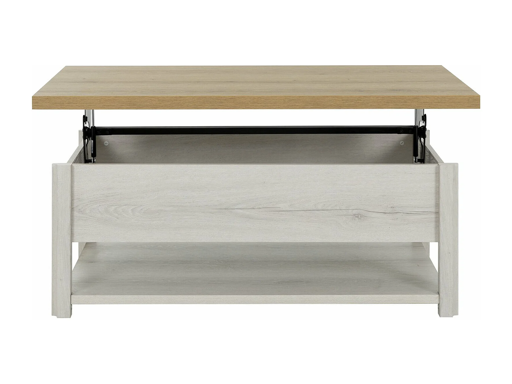 Table basse relevable effet bois chêne avec rangement