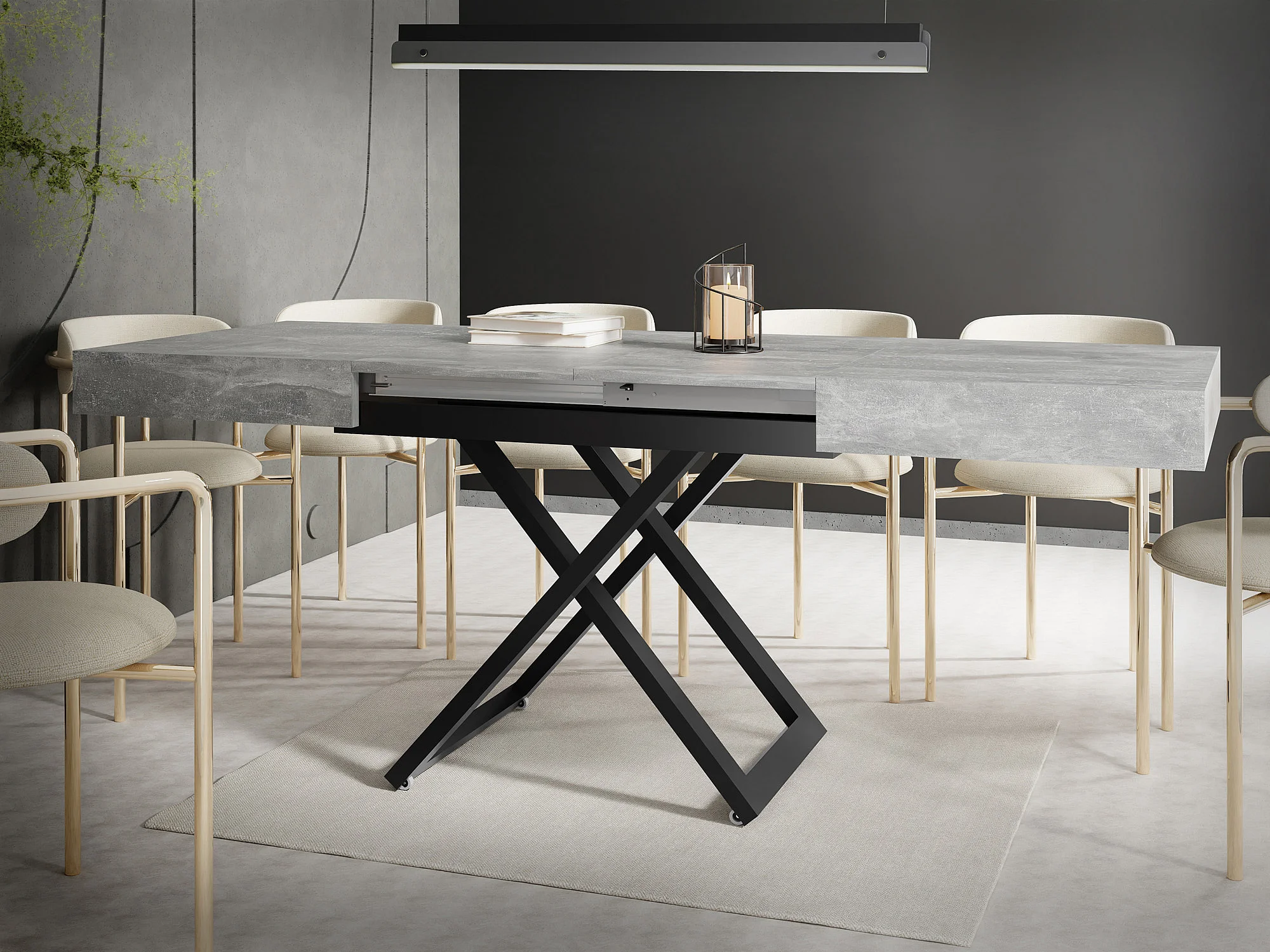 Table Basse Relevable Extensible Cavetta U - Table Multifonction Salon Salle à Manger 120-200/80/27-76 cm Béton Gris