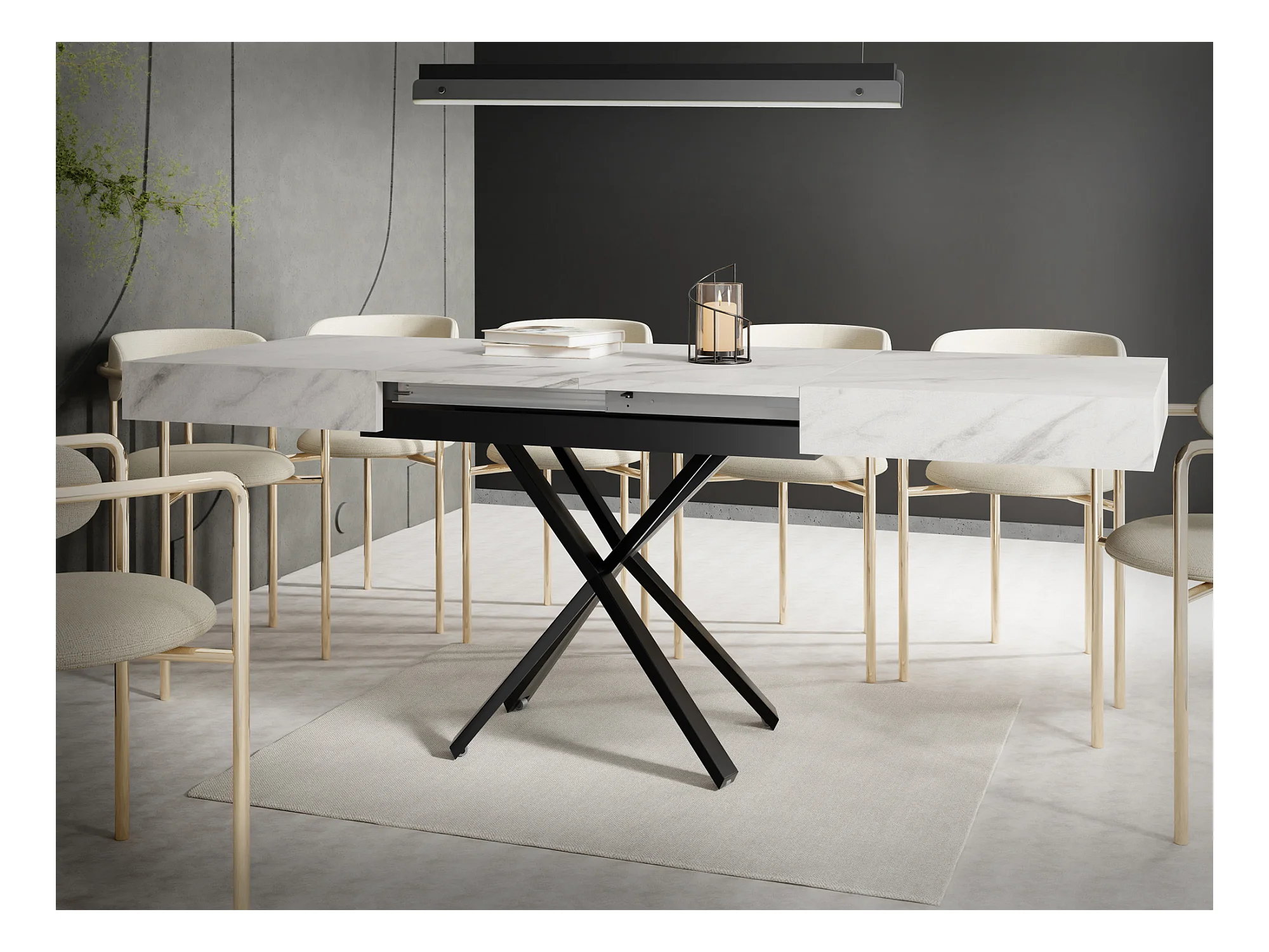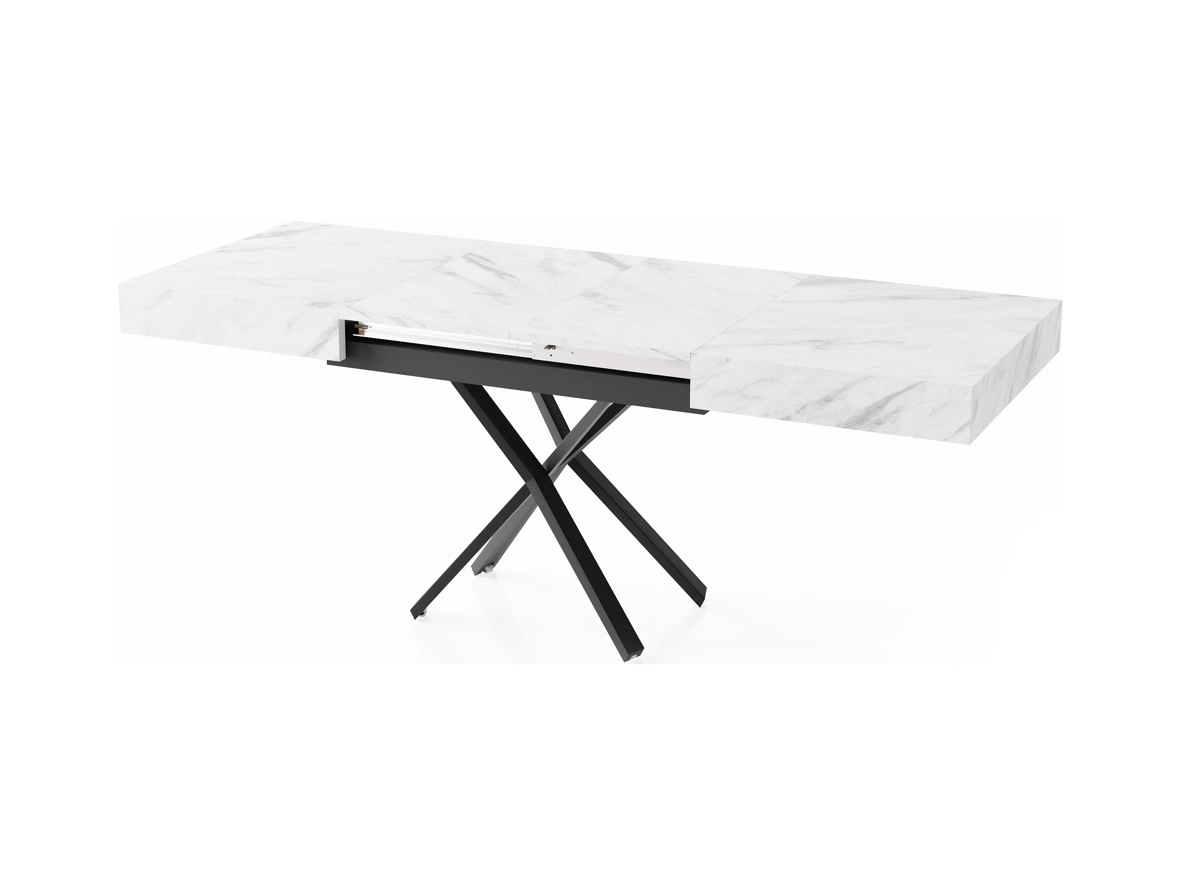 Table Basse Relevable Extensible Cavetta X - Table Multifonction Salon Salle à Manger 120-200/80/27-76 cm Marbre Blanc