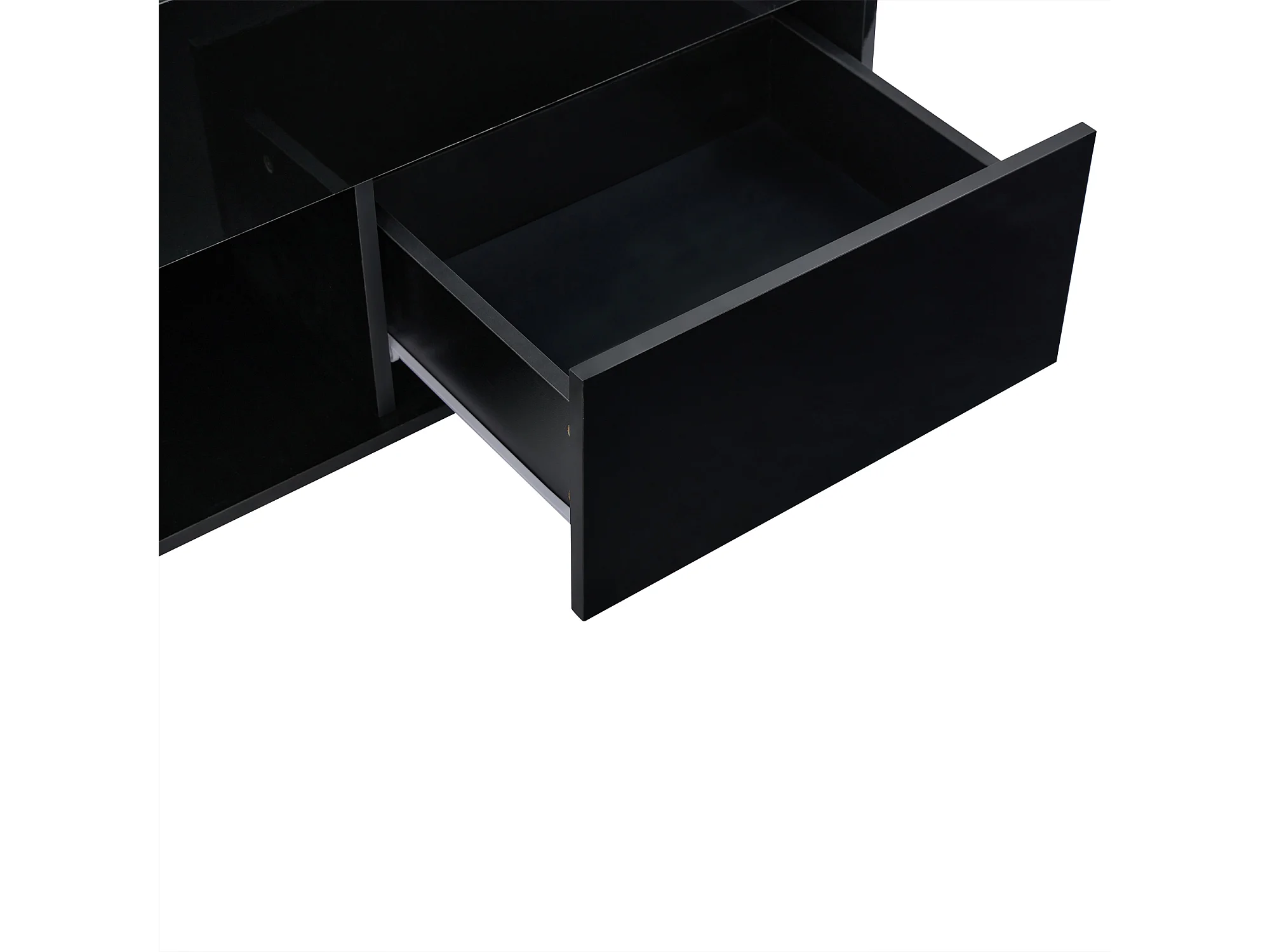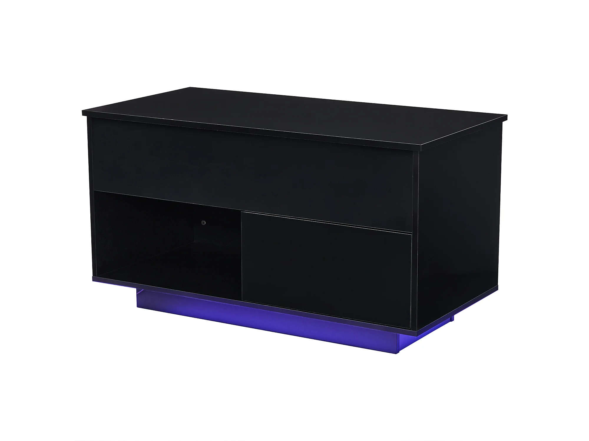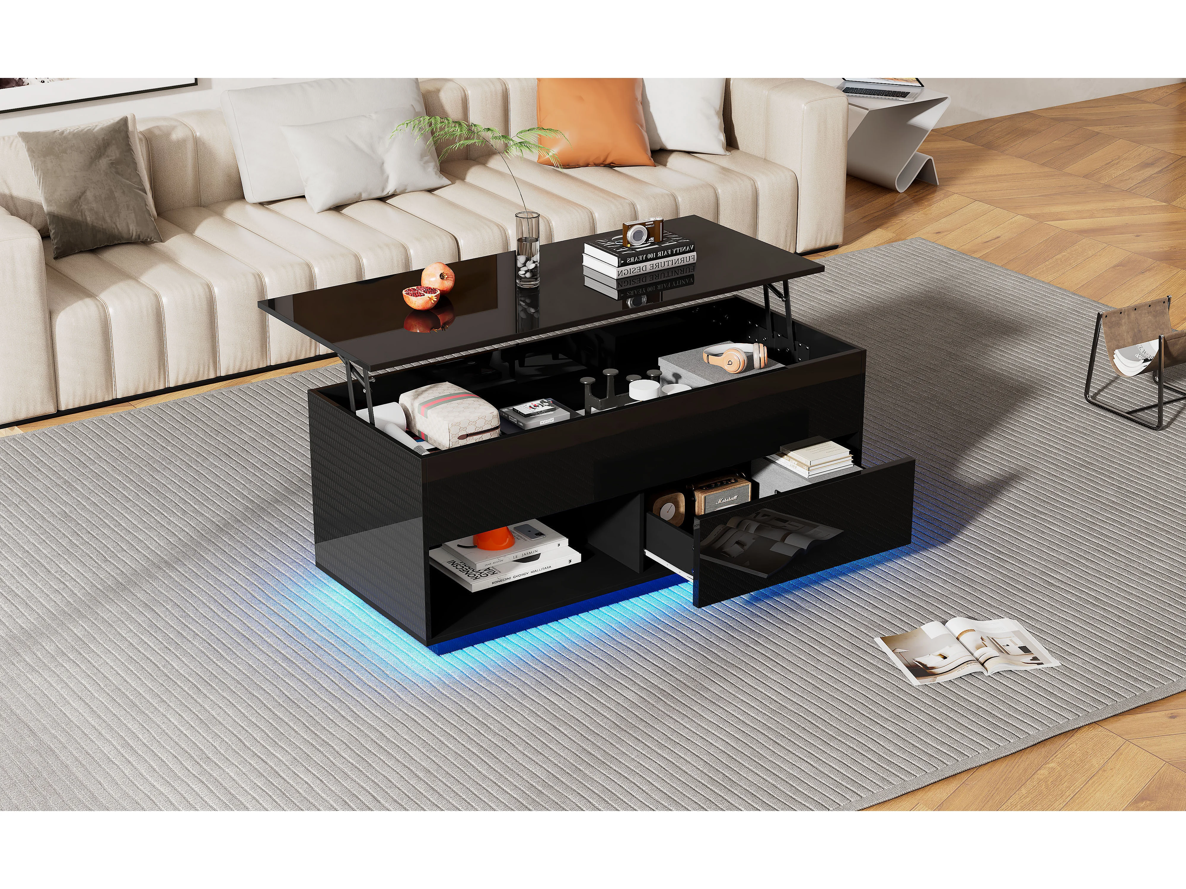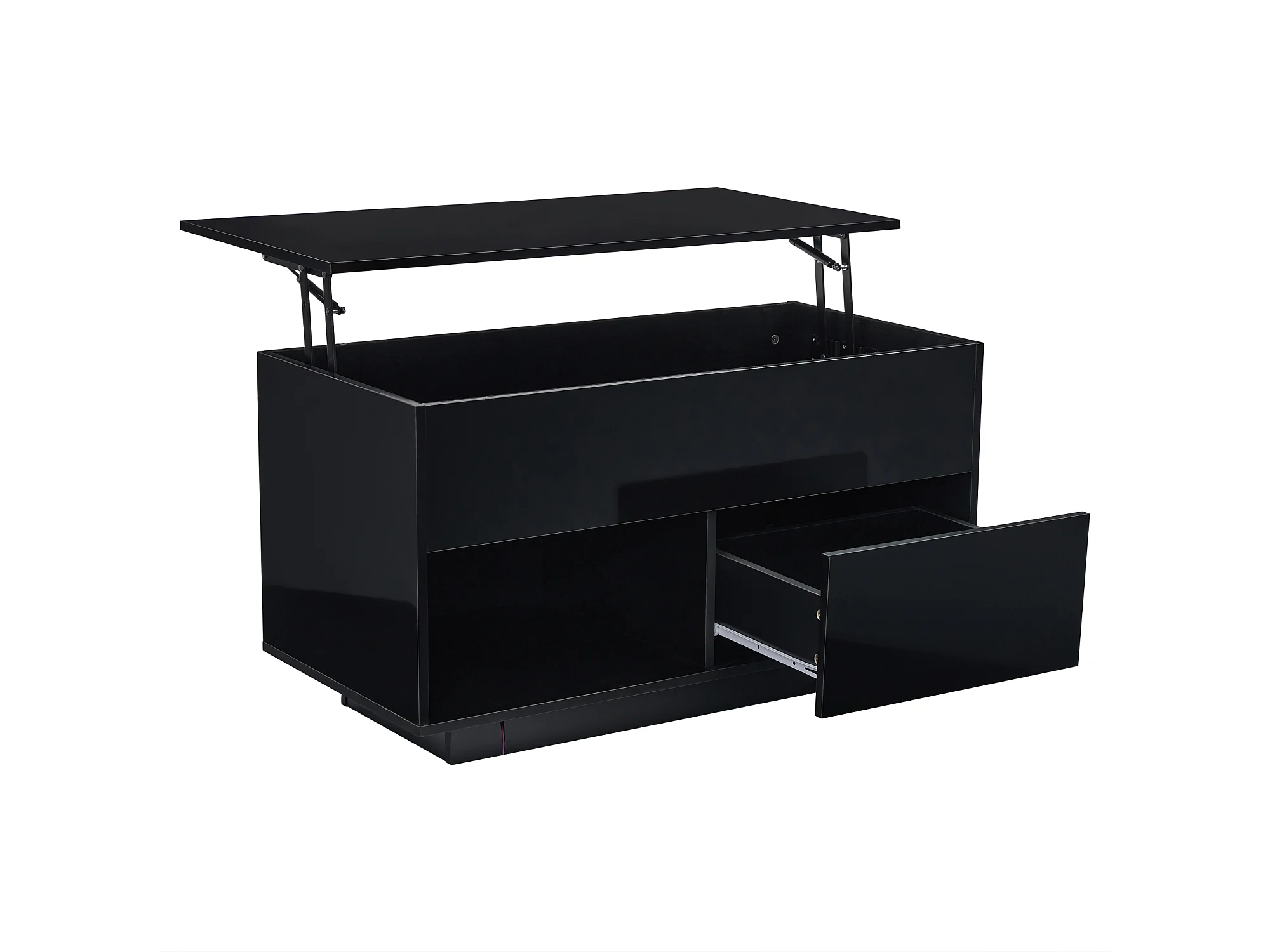 Table basse relevable laquée brillante avec LED et tiroir - Noir