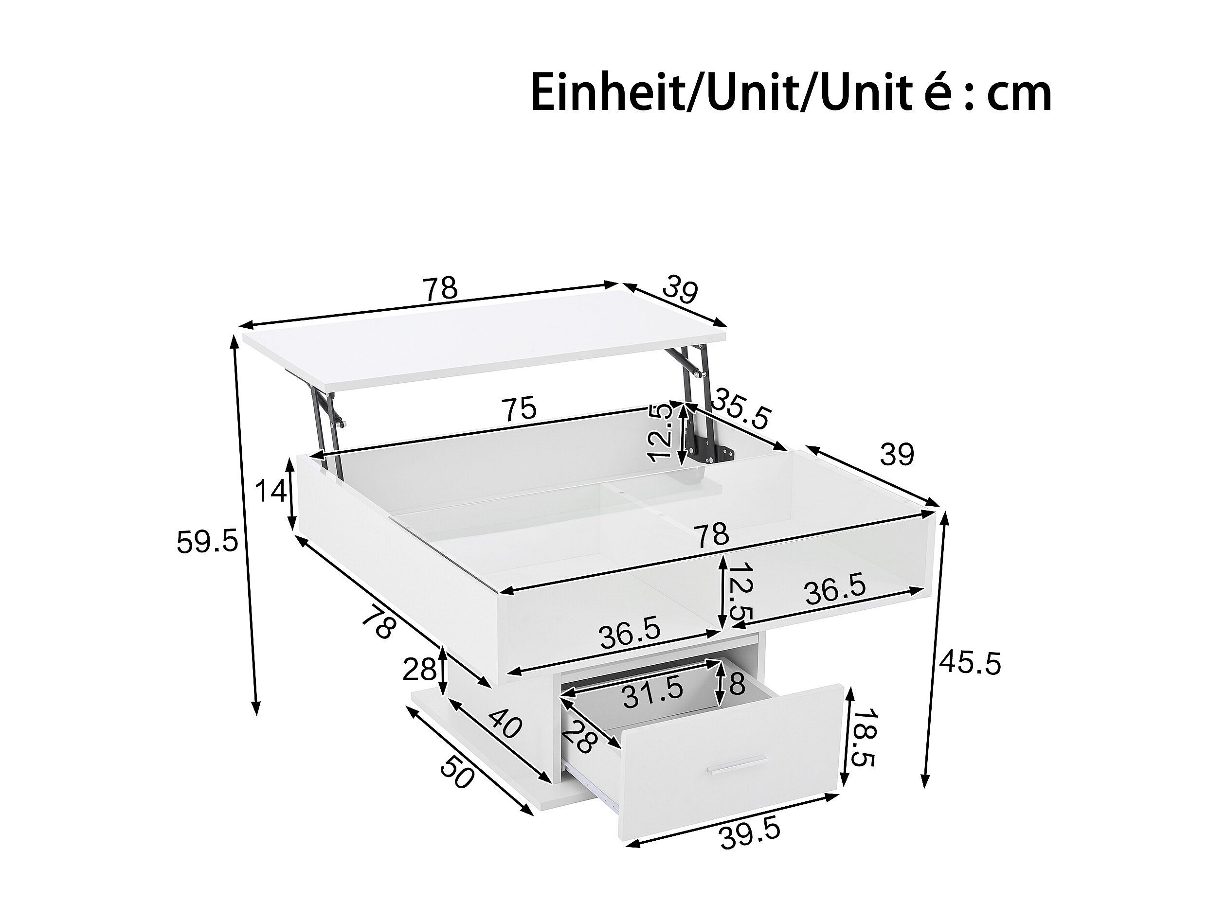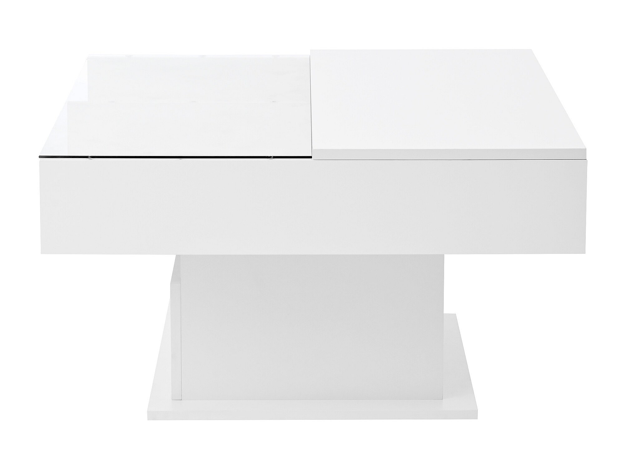 Table basse relevable - 78 x 78 x 45/59 cm - haute brillance avec Leds + 1 tiroir - aggloméré - blanc