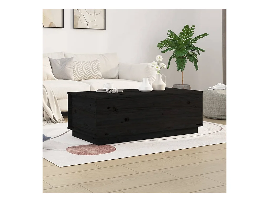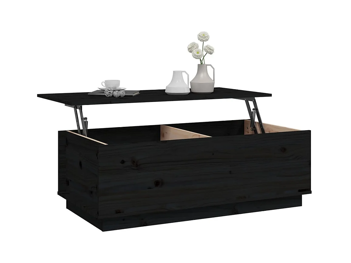 Table basse relevable Noir 100x50x35 cm Bois massif de pin OFR40183 BonneVie Meuble