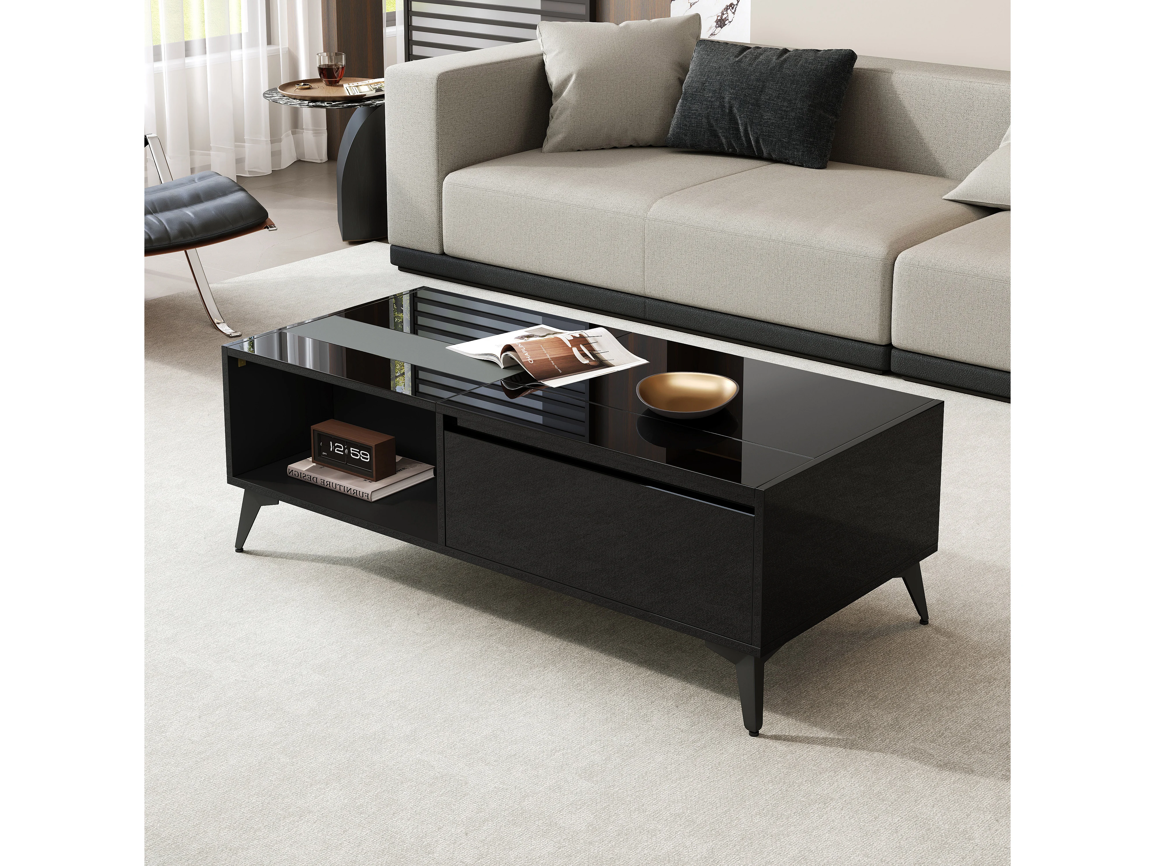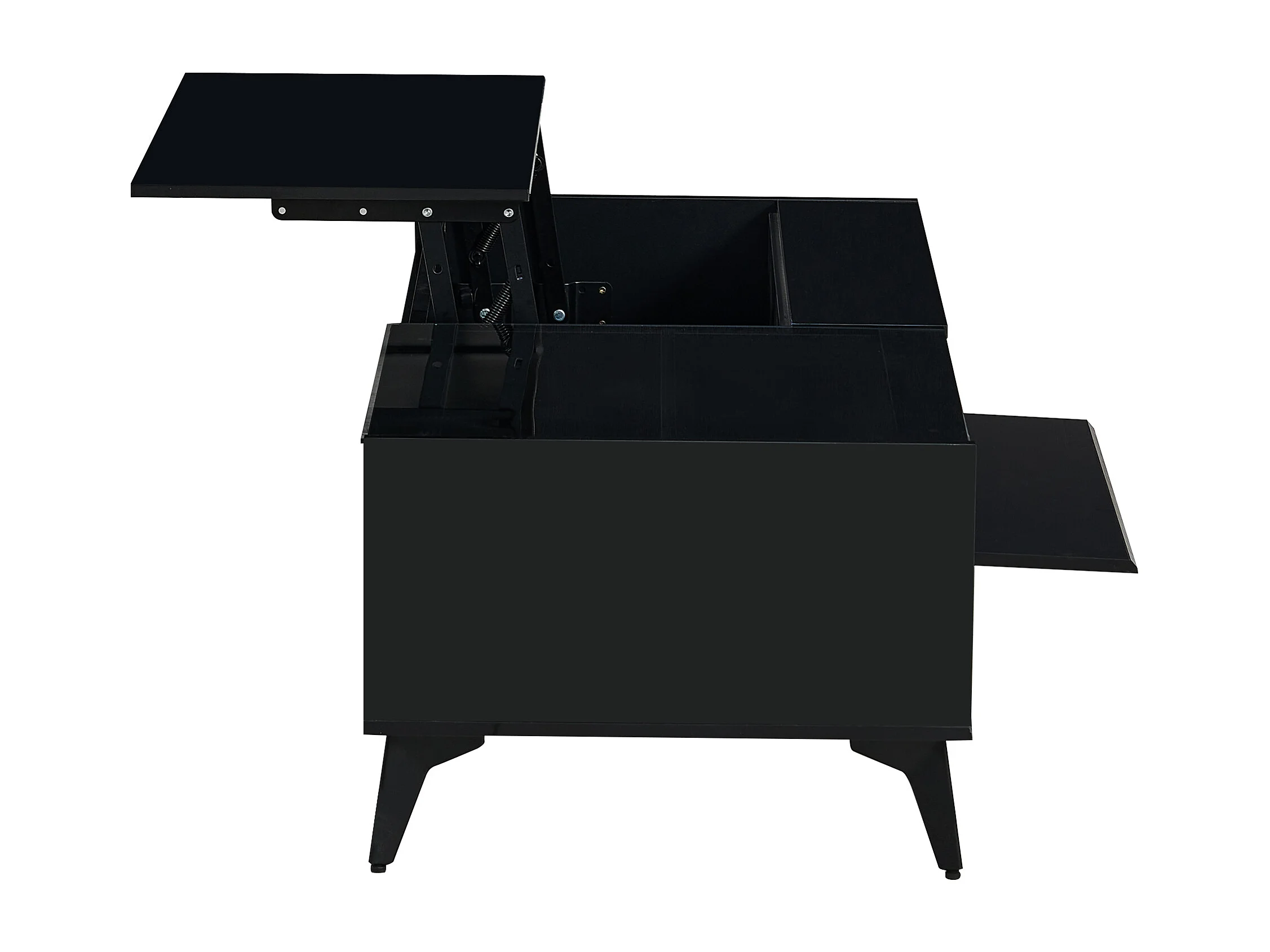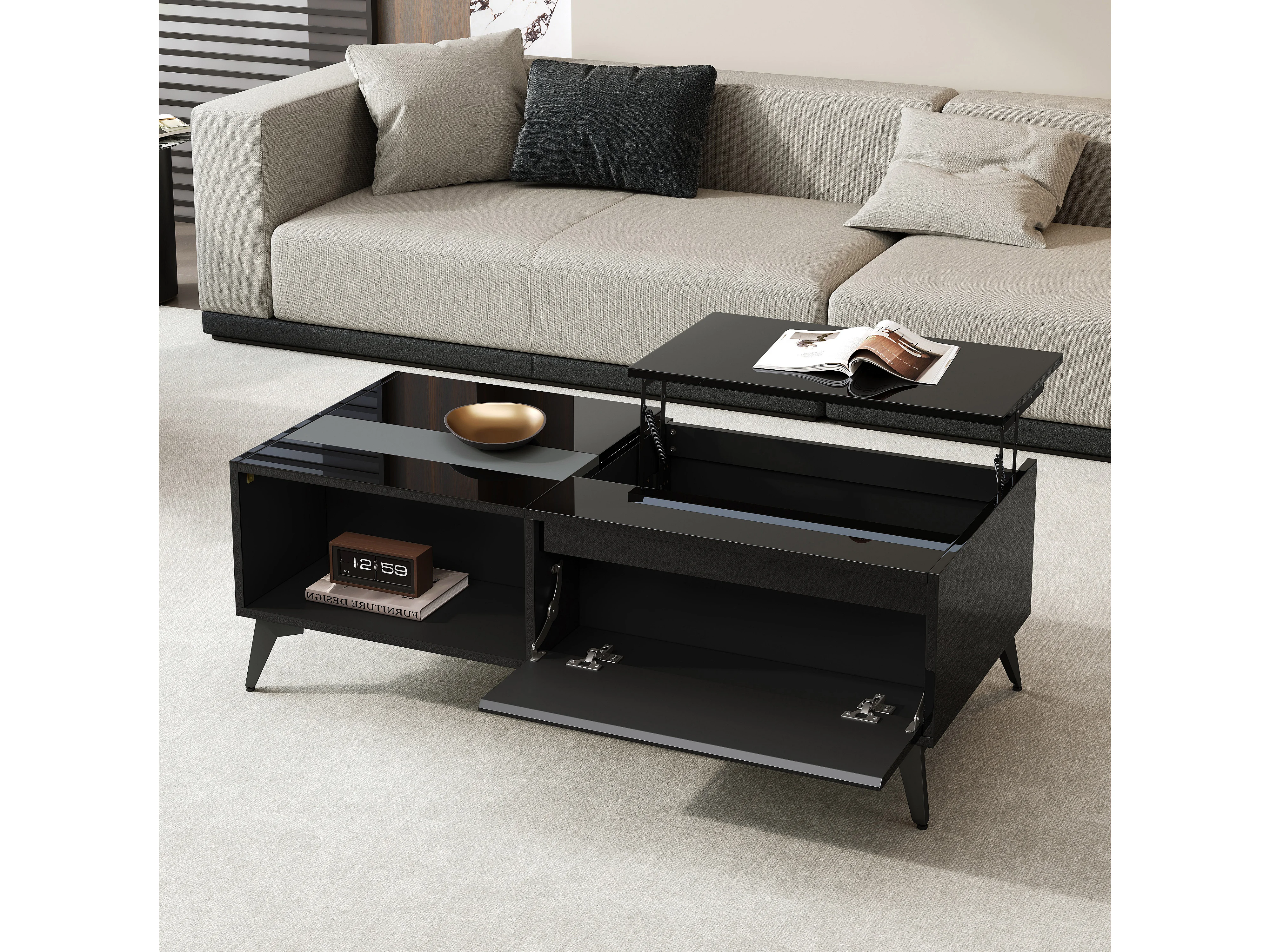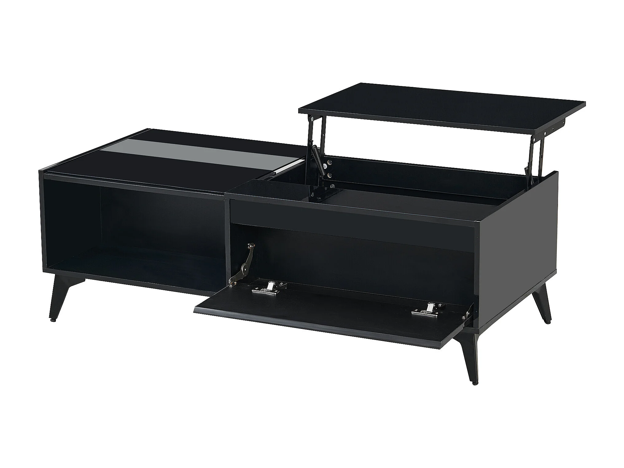 Table basse relevable noire brillante avec rangement - Bois en PB