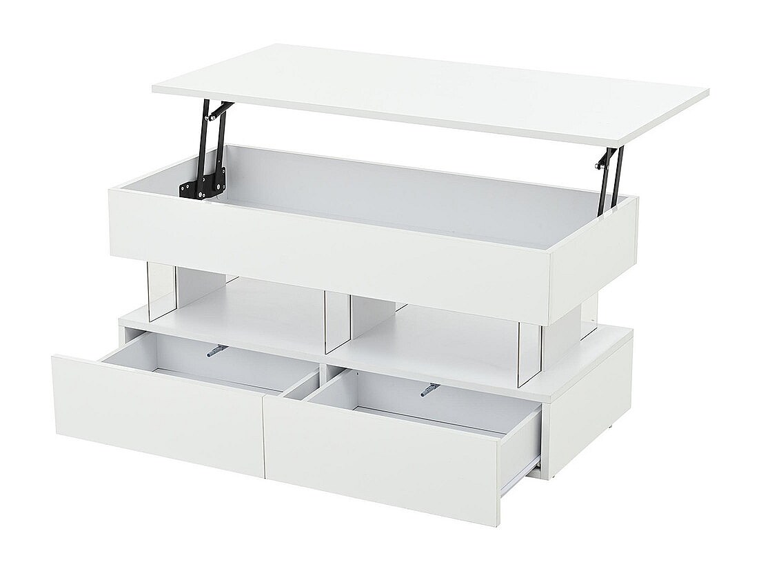 Table basse avec plateau relevable 95x48x40cm avec 2 tiroirs, LED, corps en blanc laqué