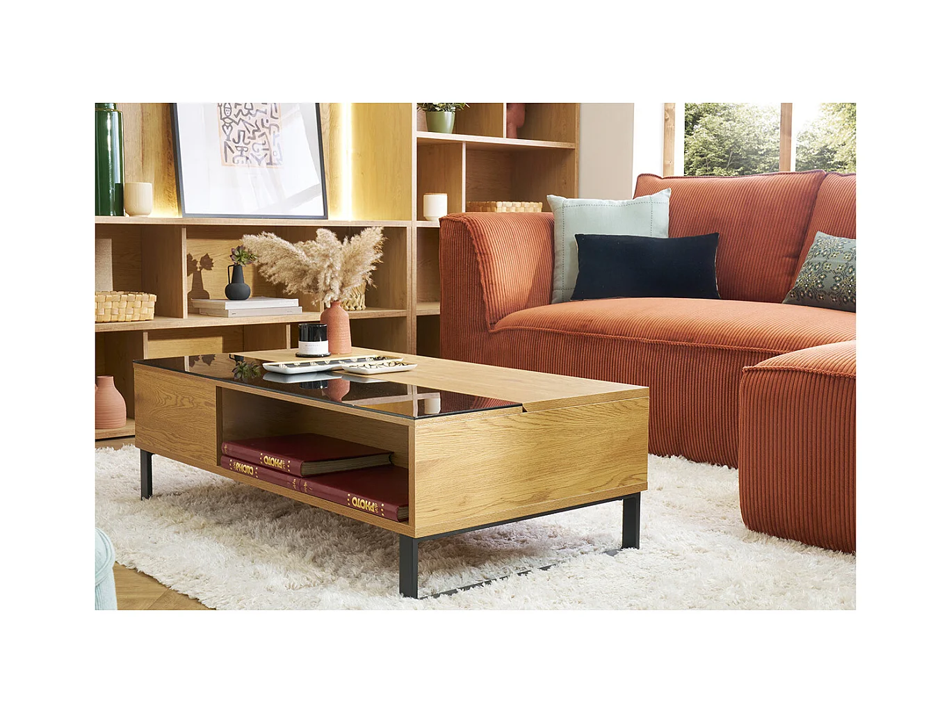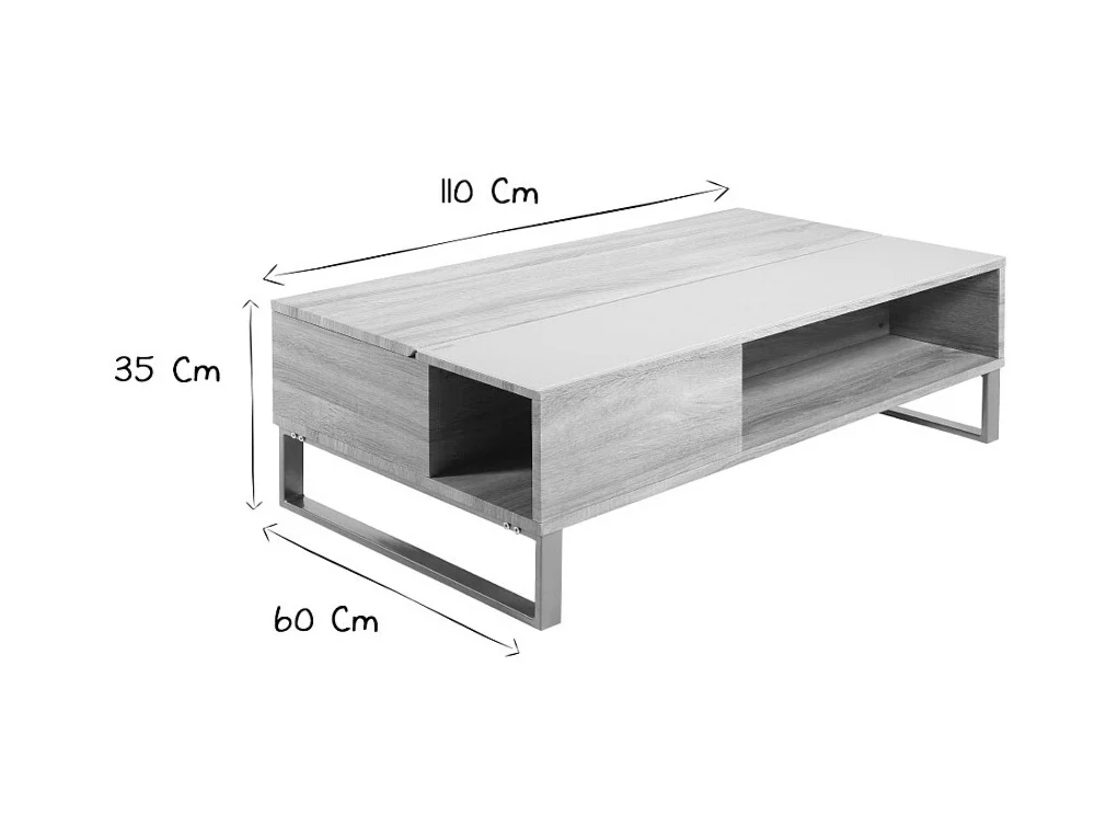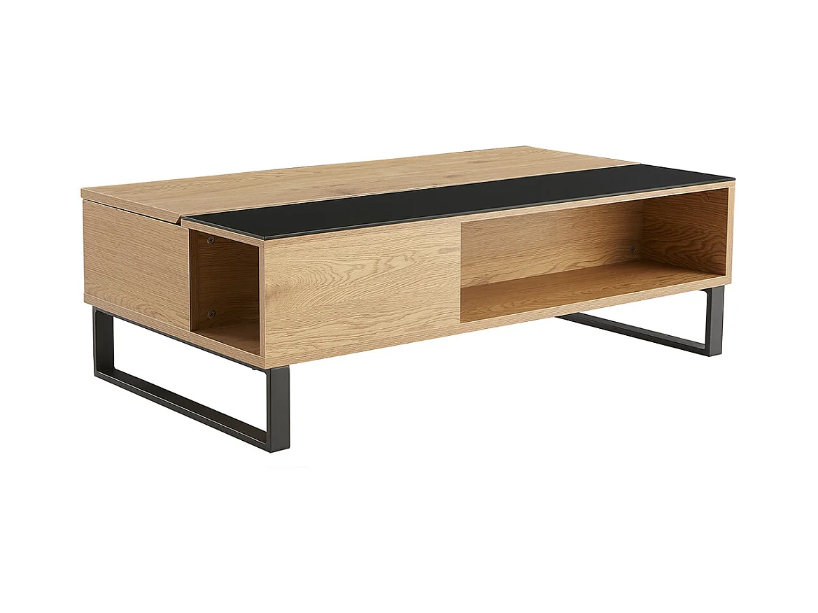 Table basse relevable rectangulaire bois clair et métal noir L110 cm WYNN