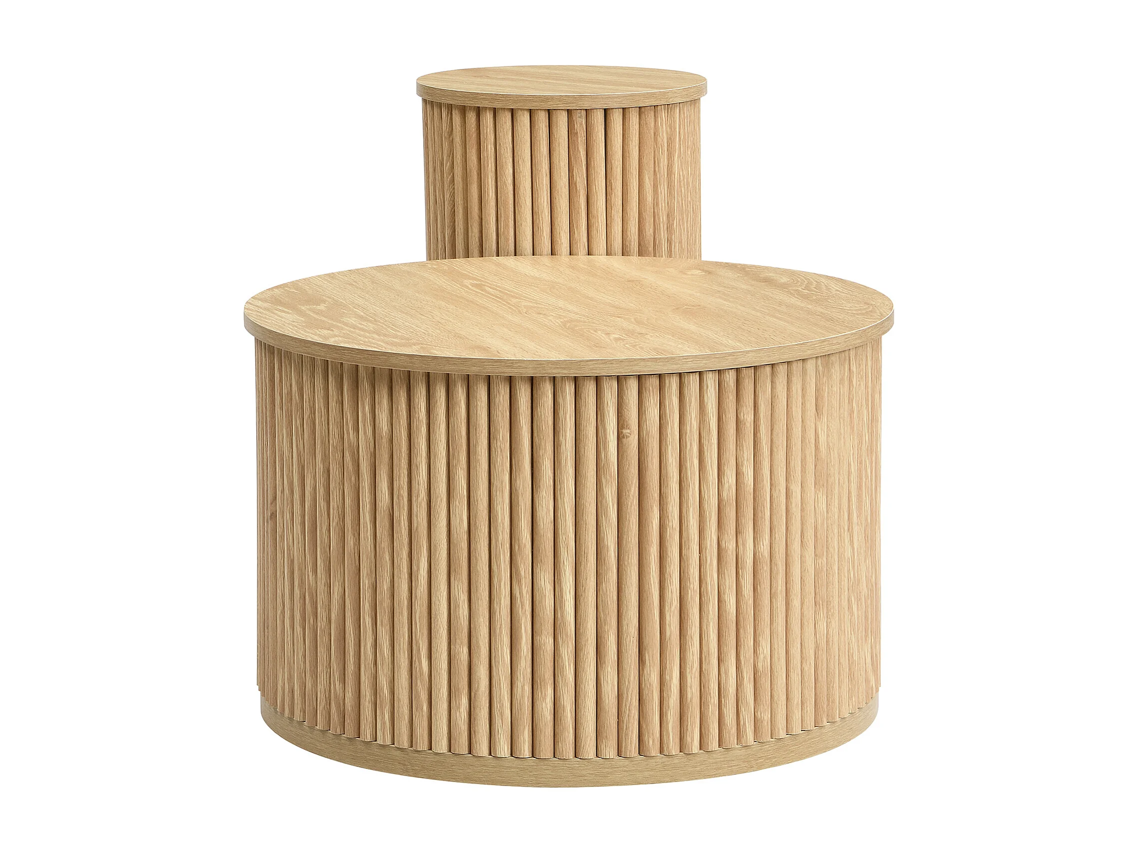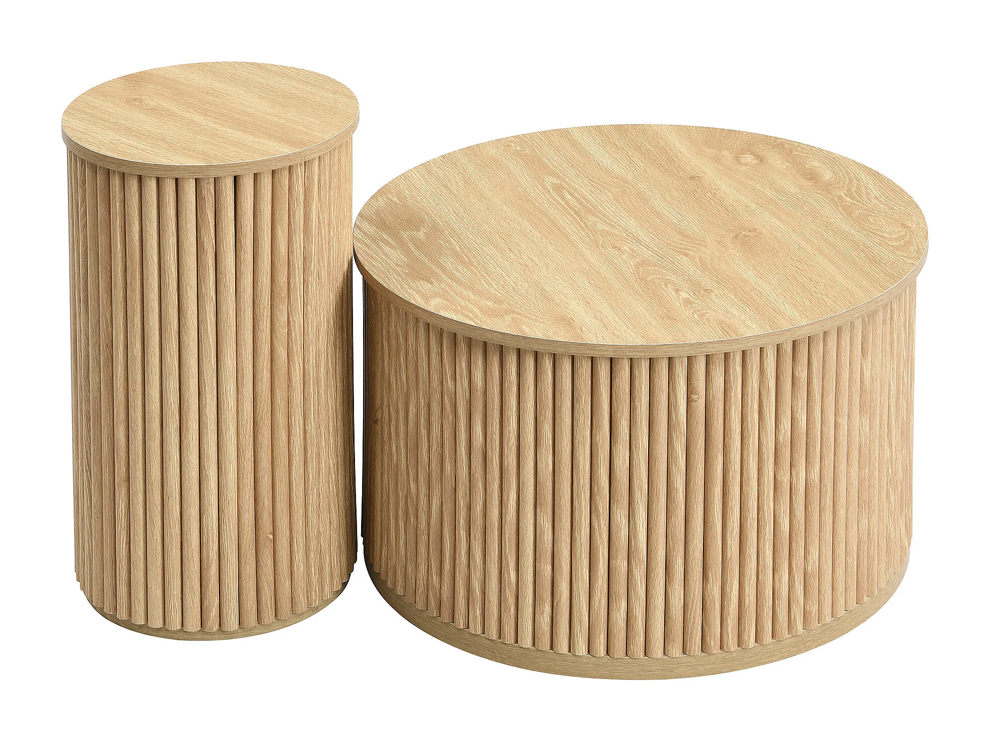 Table basse rond - Lot de 2 - Rayures verticales - Couleur bois -Pour salon et chambre