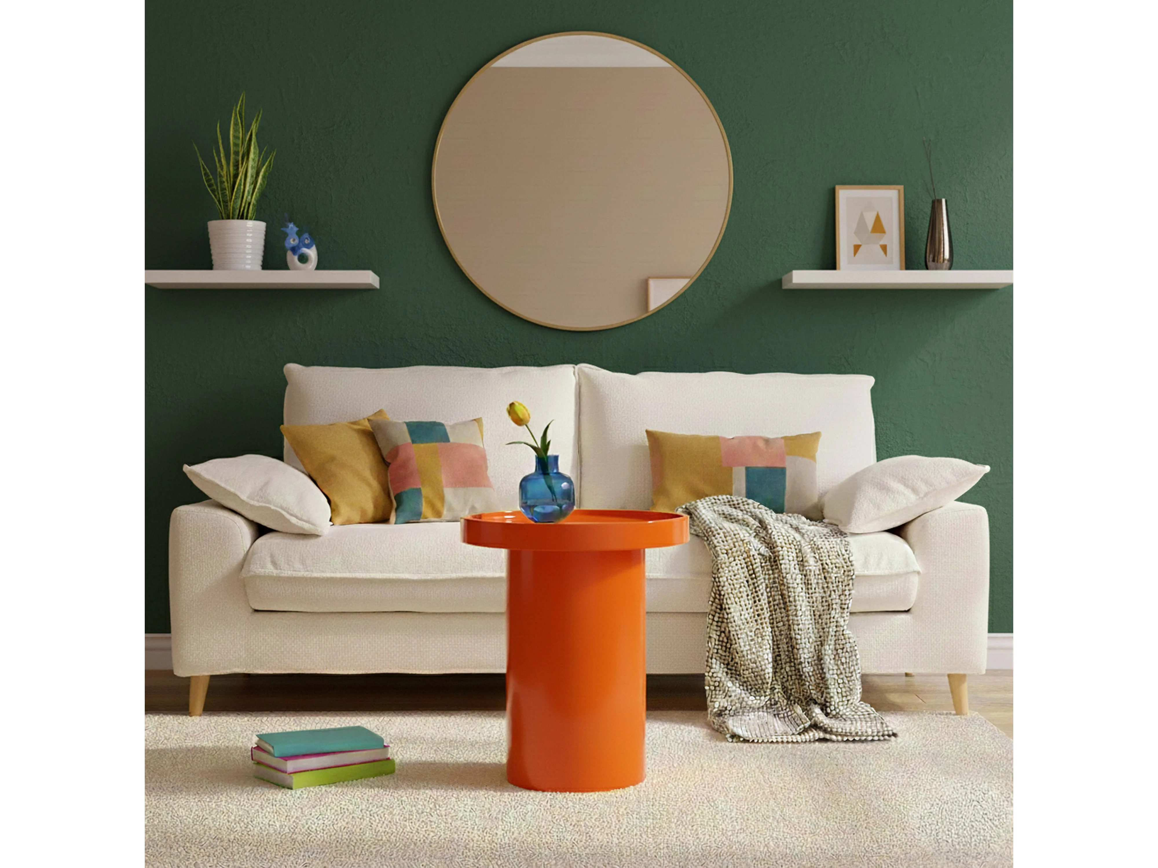 Table basse ronde 40 cm en MDF effet laqué orange