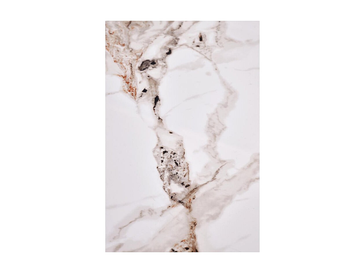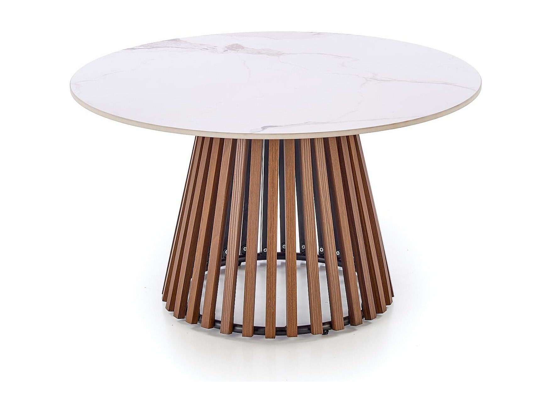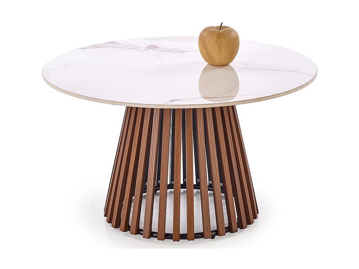 Table basse ronde aspect marbre 80 cm avec pied plaqué noyer KAREN