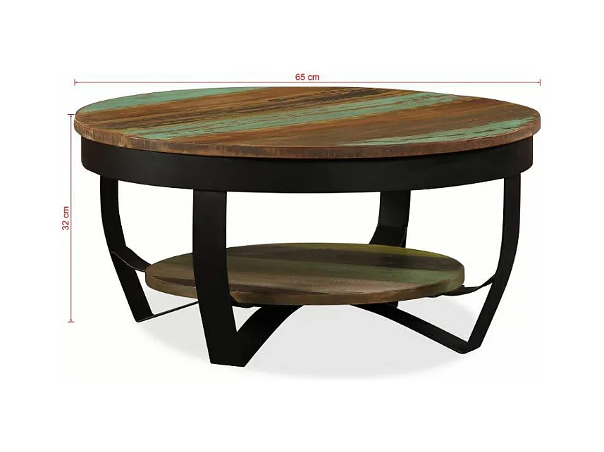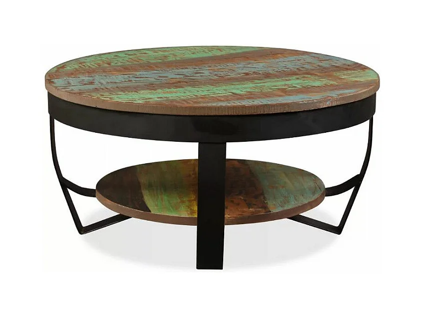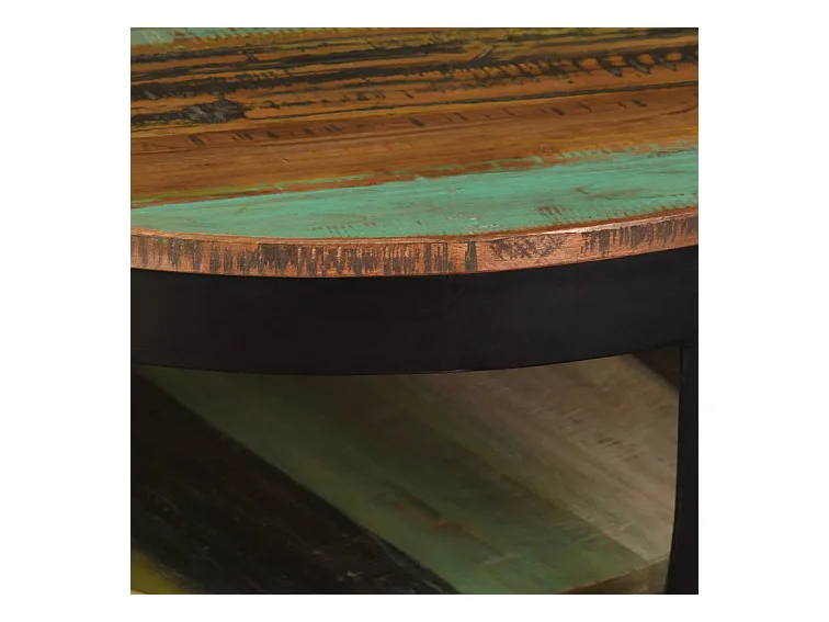 Table basse ronde bois massif recyclé et pieds métal noir Boust