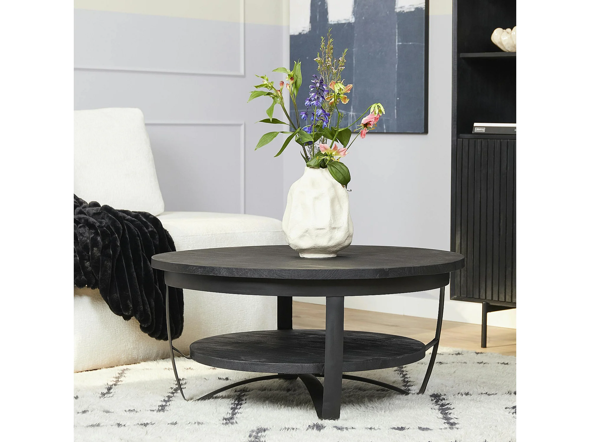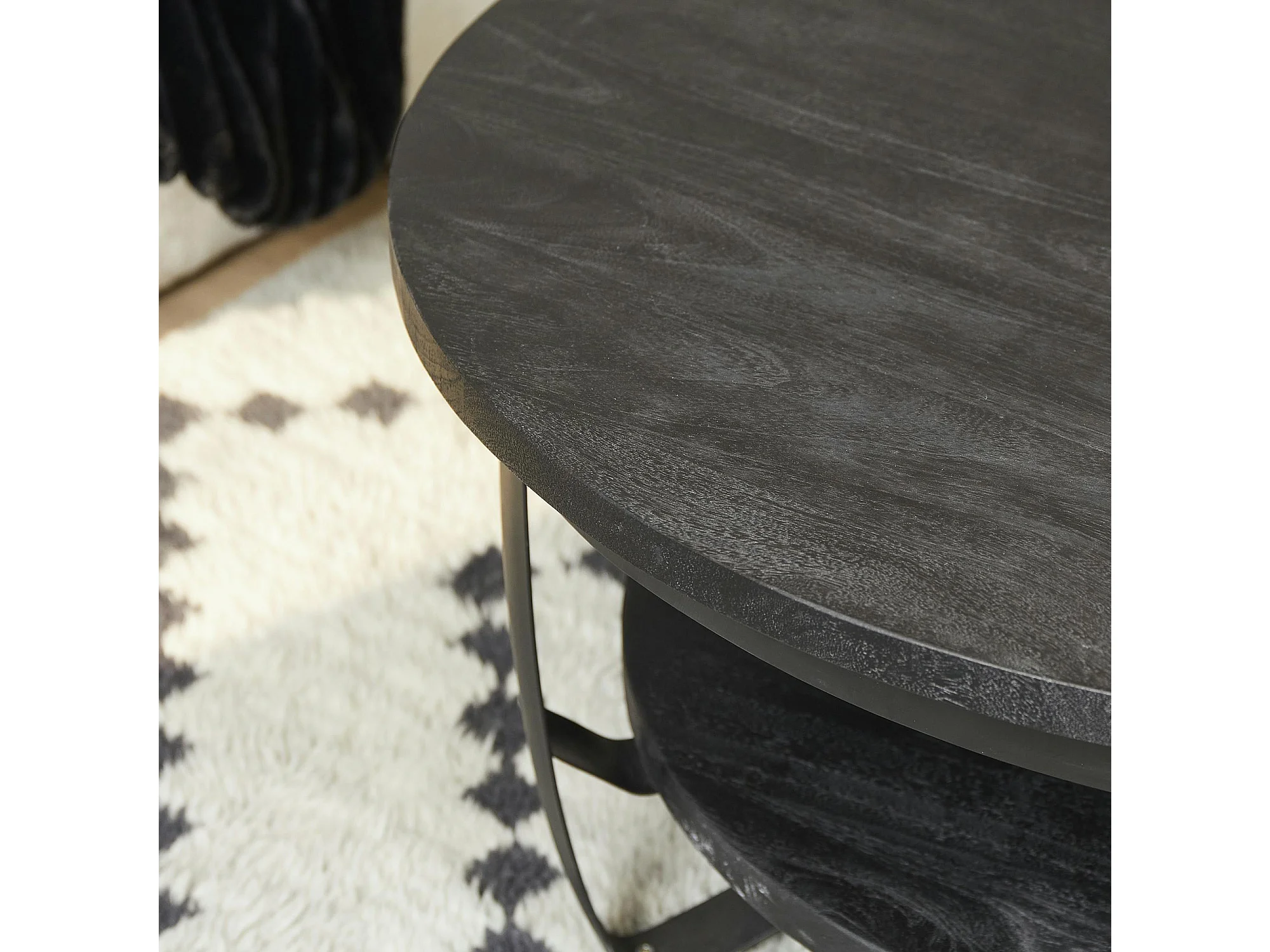 Table basse ronde bois noir et métal Ø70 cm OMAHA