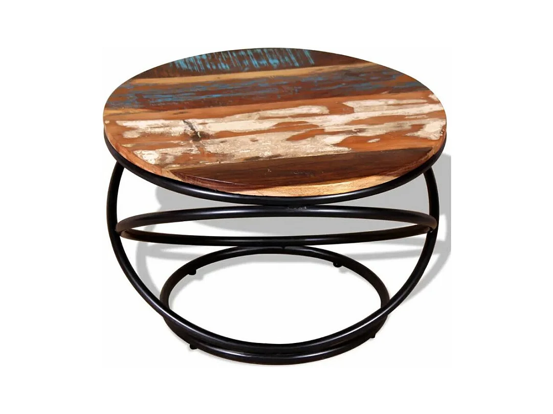 Table basse ronde bois recyclé et métal noir Cloust