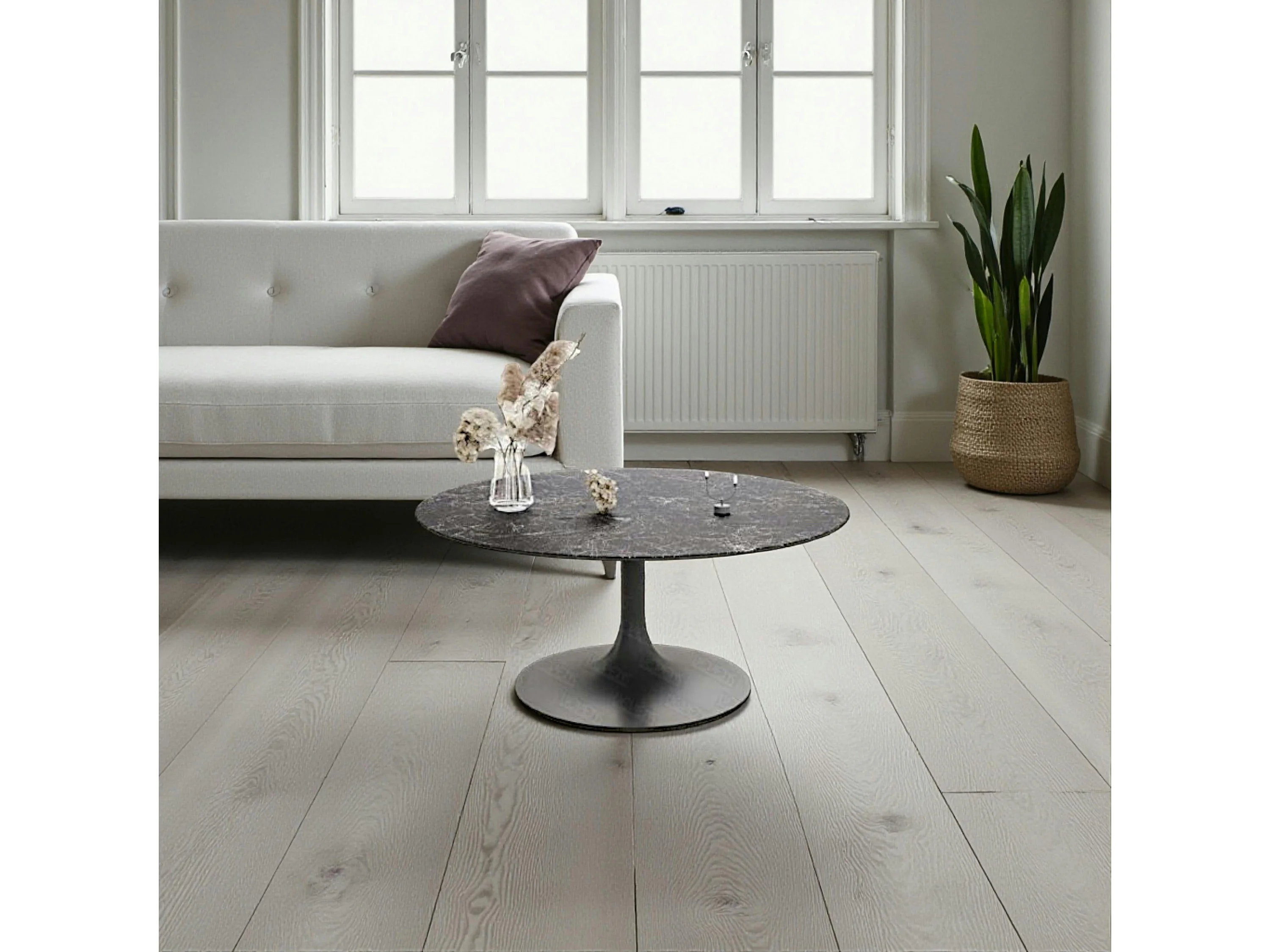 Table basse ronde céramique grise marbrée, pied tulipe LIGURIE
