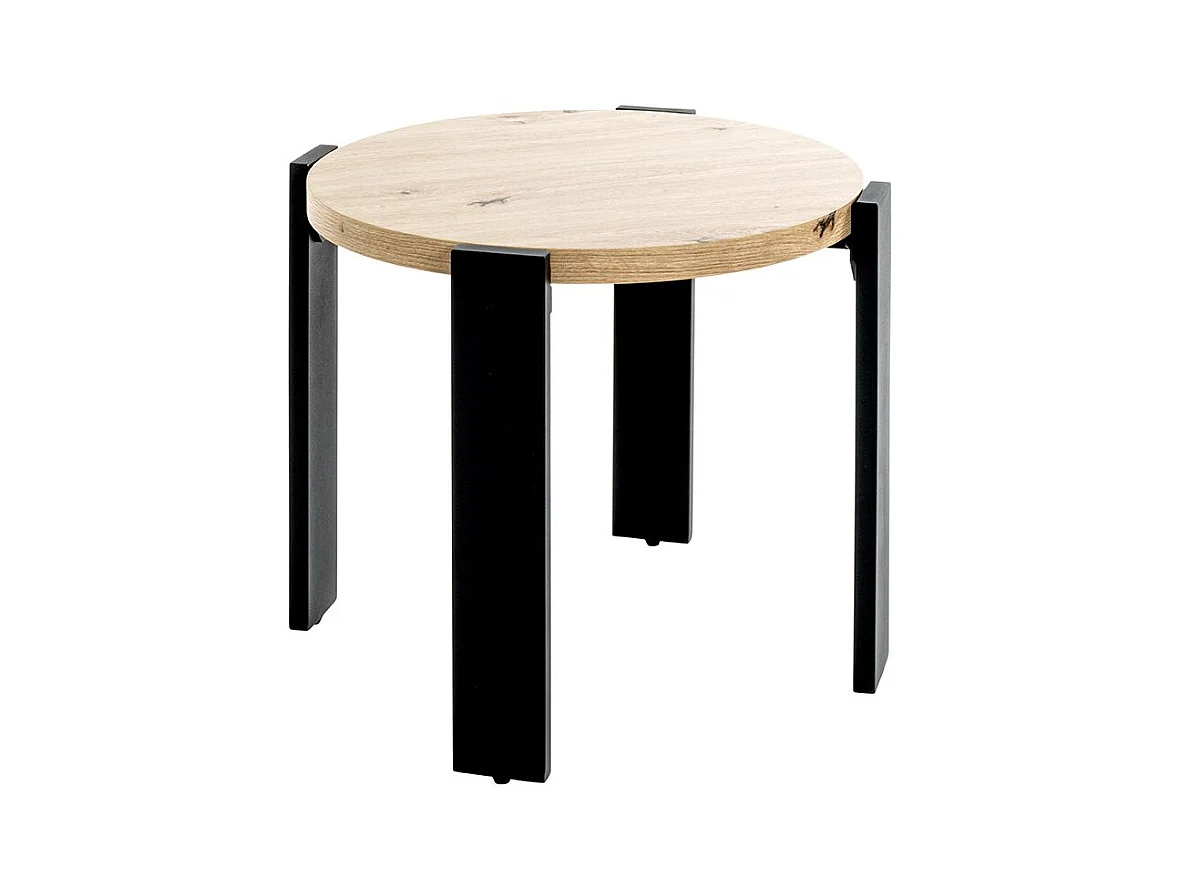 Table basse ronde coloris chêne et métal noir - Diamètre 50 x Hauteur 46 cm