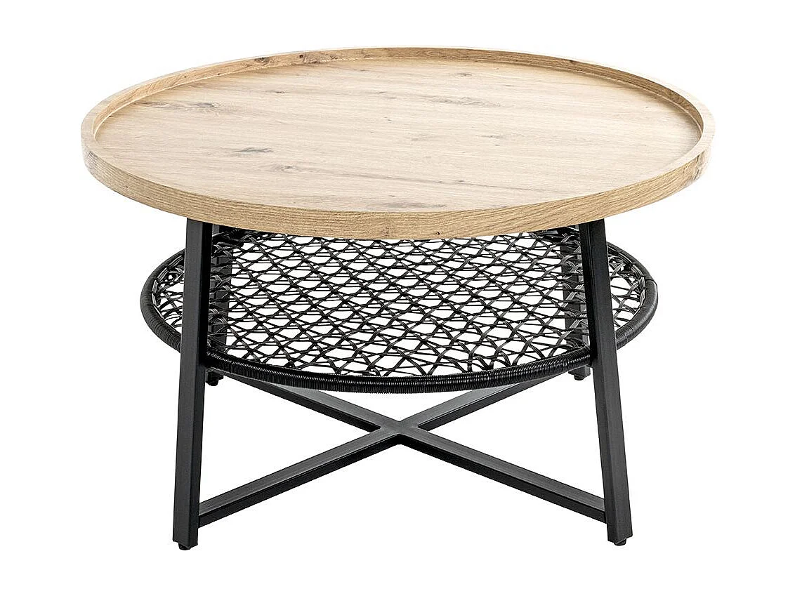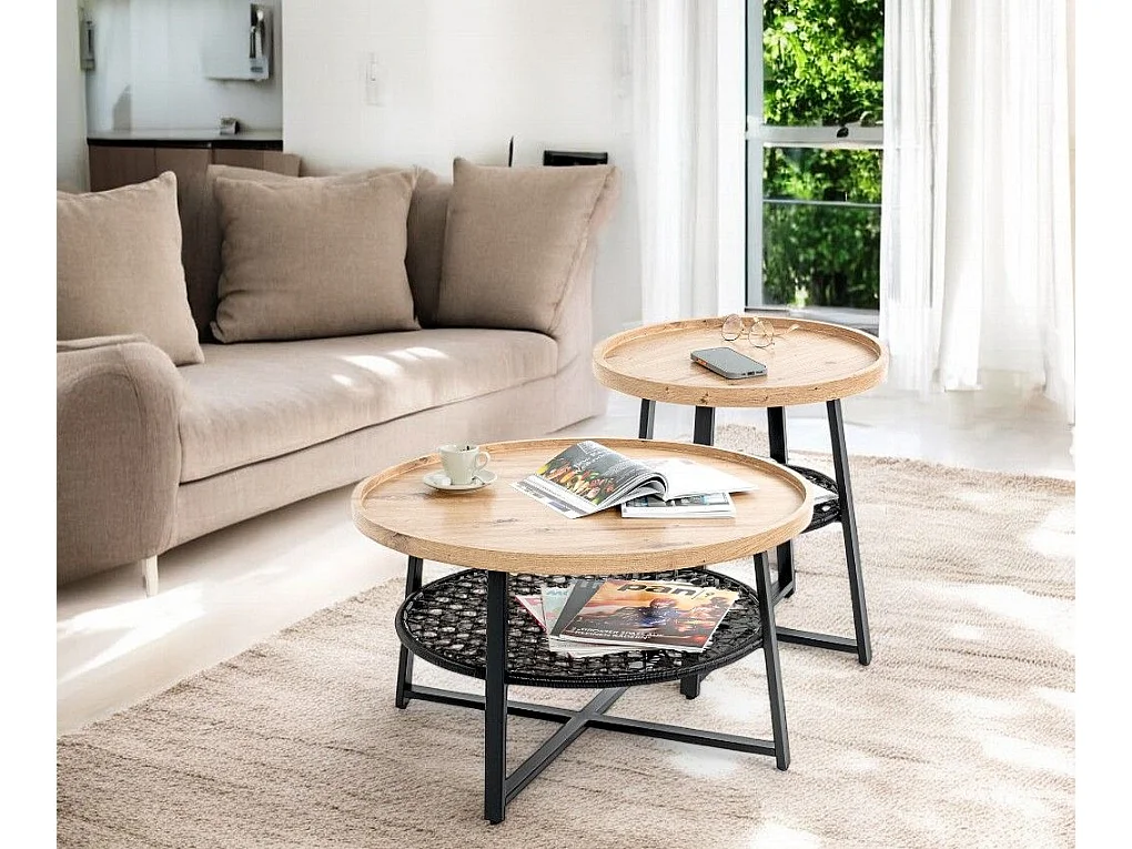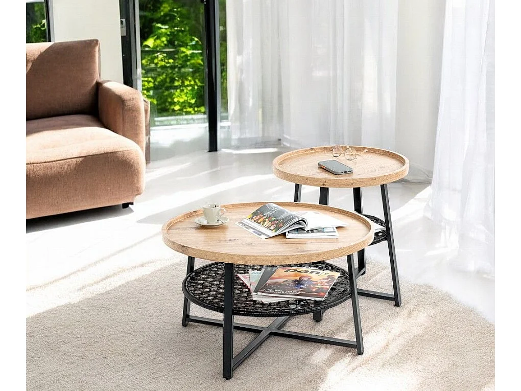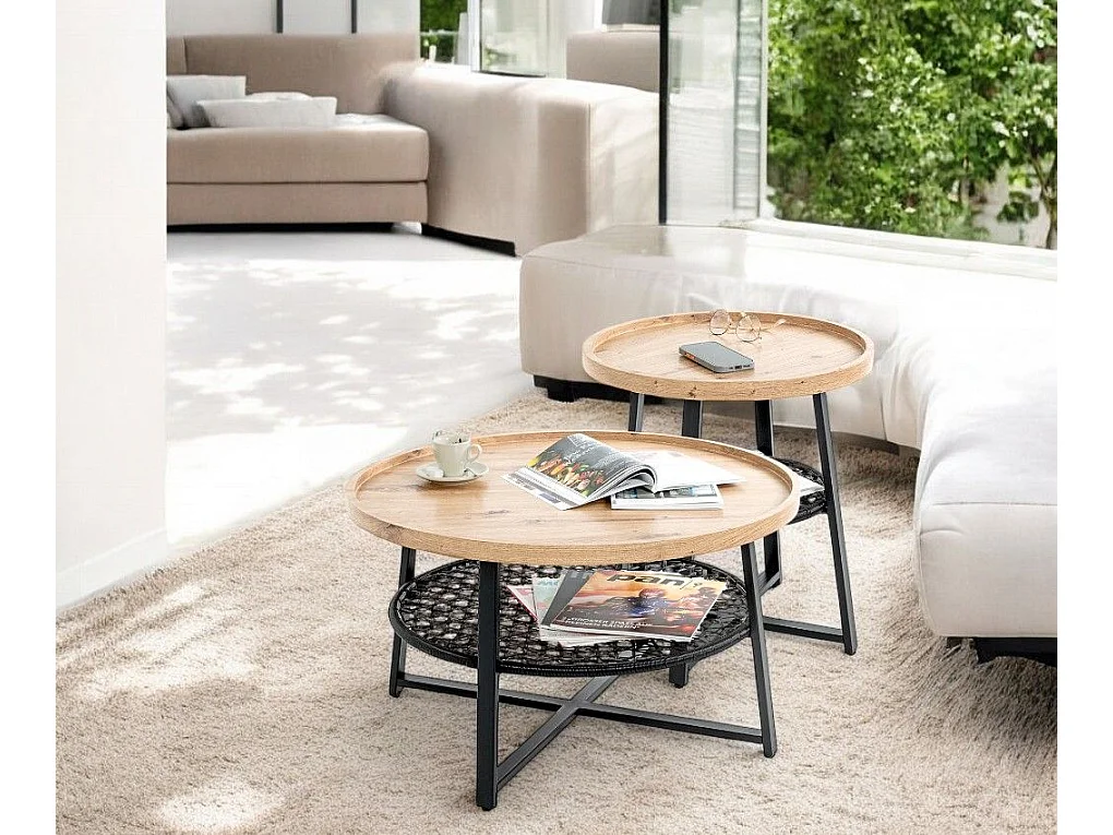 Table basse ronde coloris chêne et métal noir - Diamètre 75 x Hauteur 45 cm