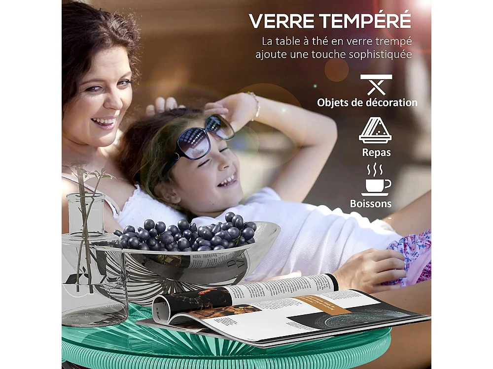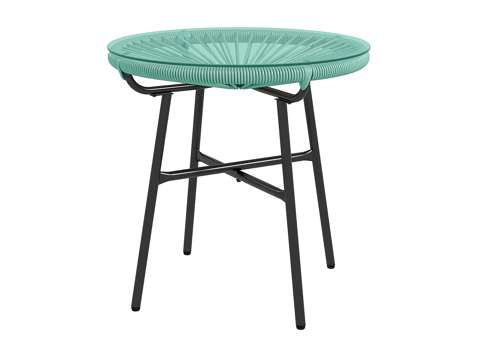 Table basse ronde de jardin en résine aspect rotin métal et plateau verre trempé Ø 50 x 50H cm