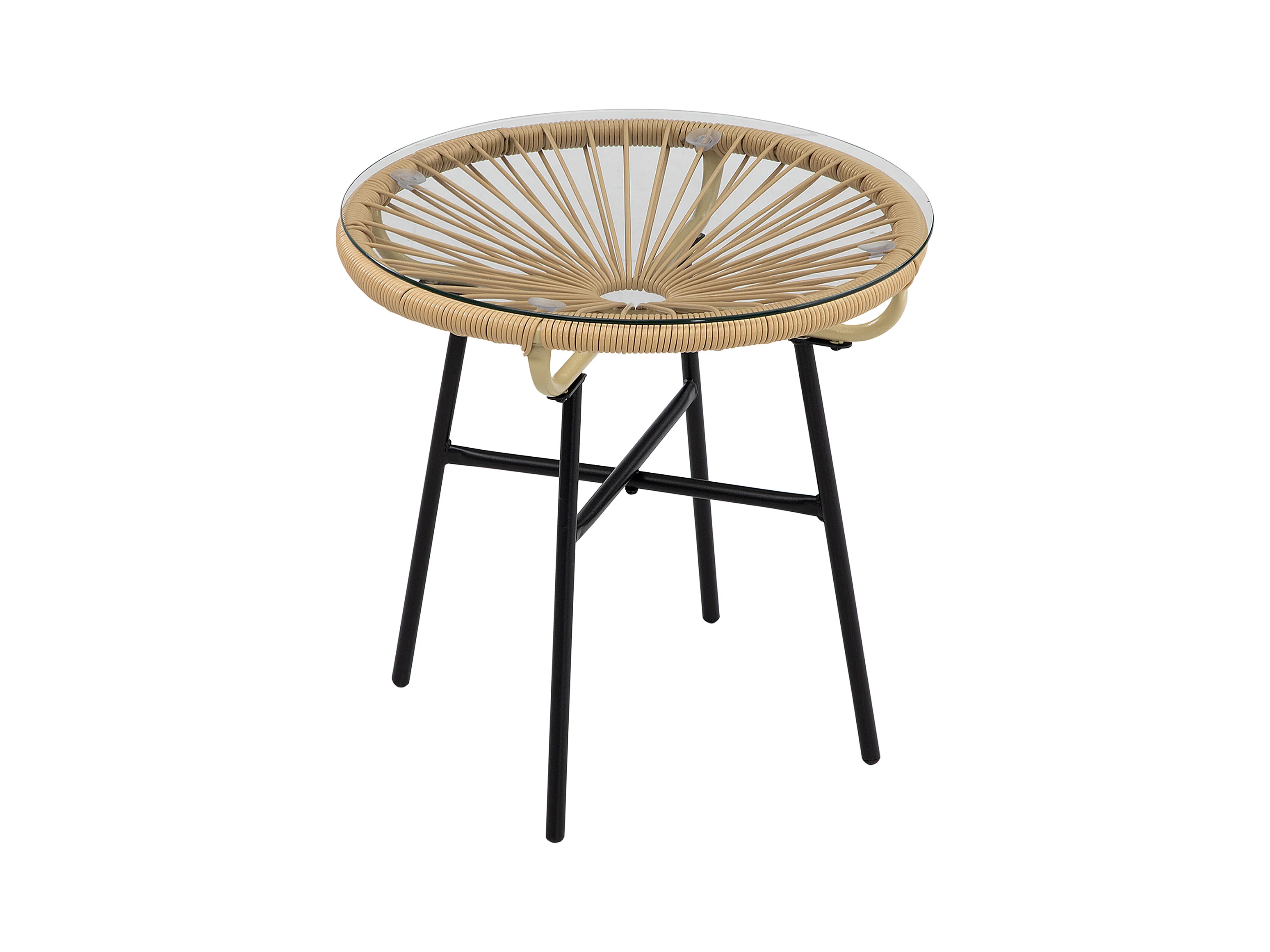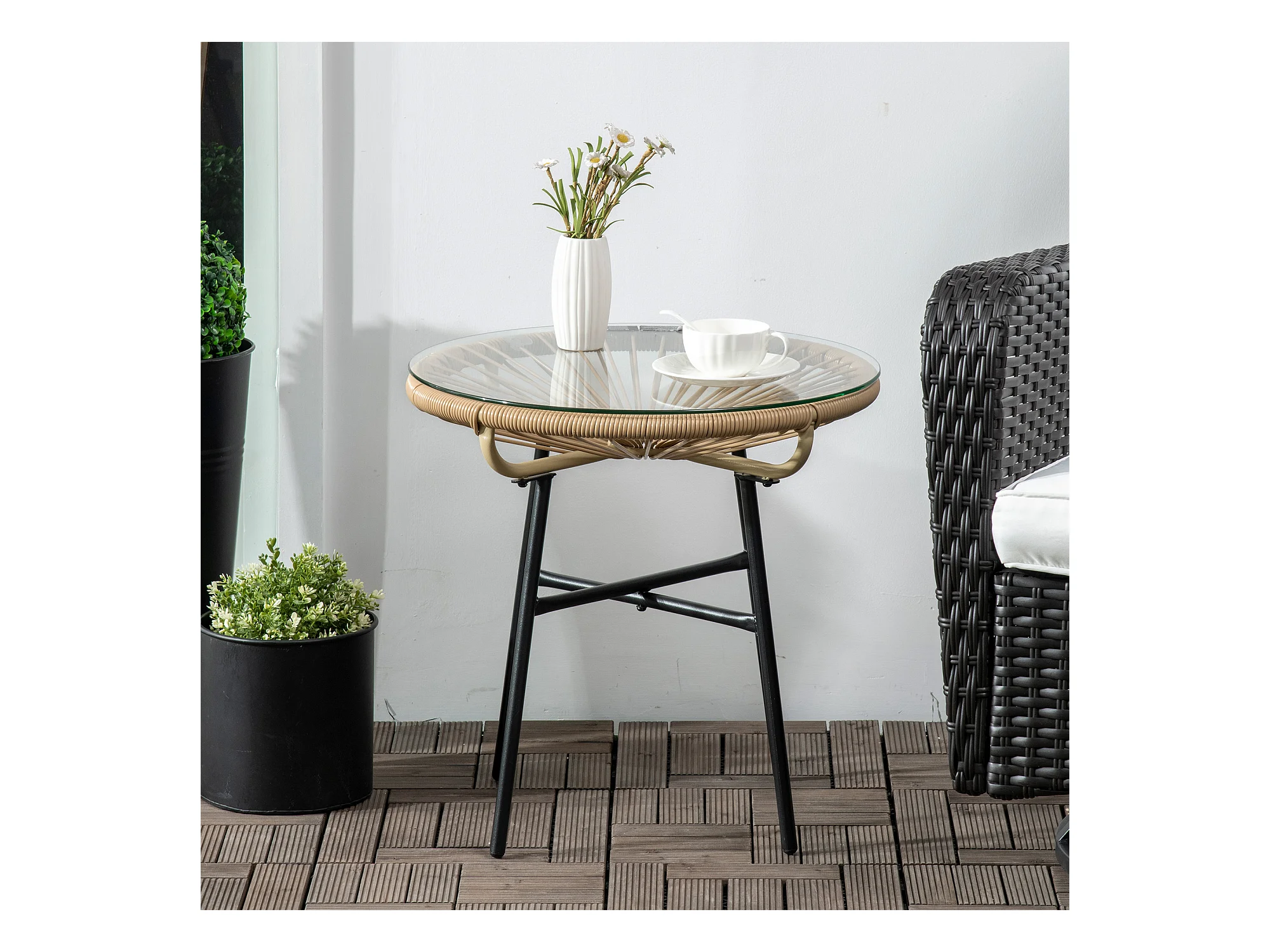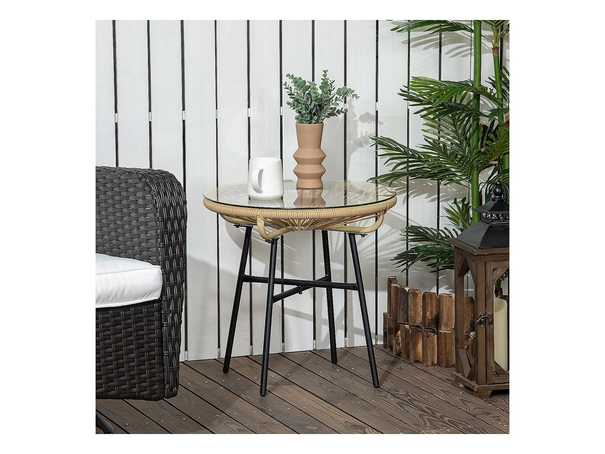 Table basse ronde de jardin en résine aspect rotin métal et plateau verre trempé Ø 50 x 50H cm beige