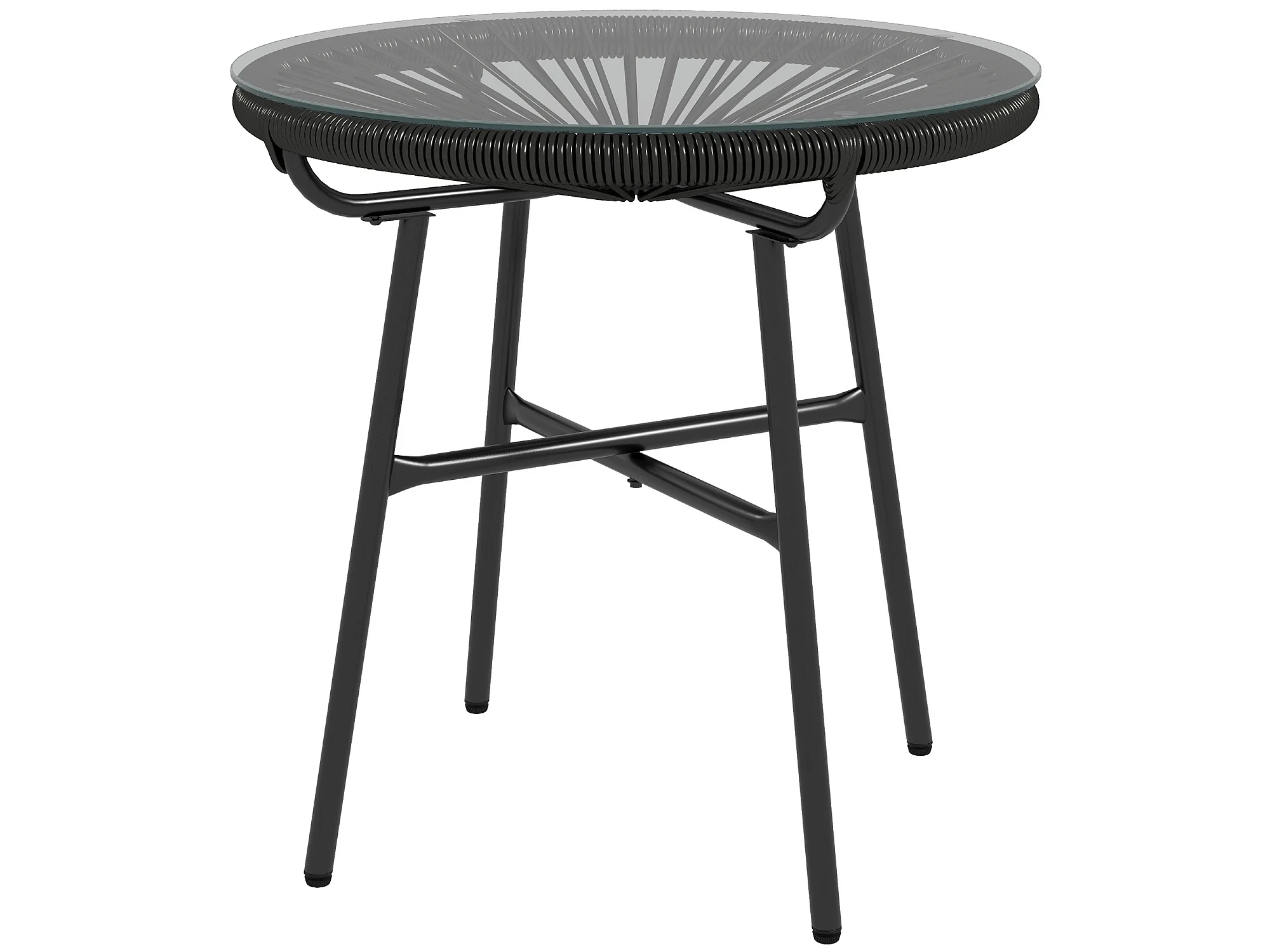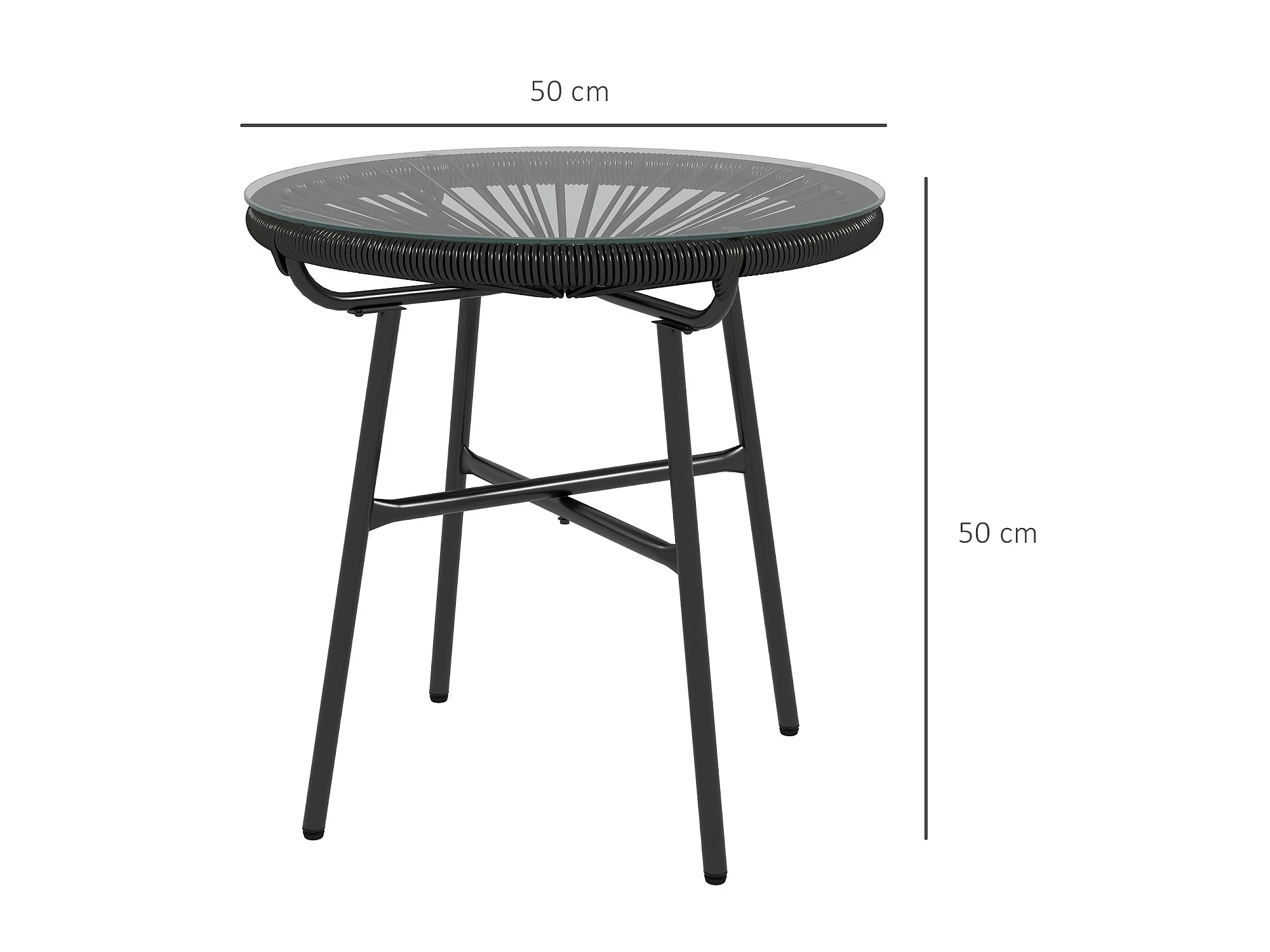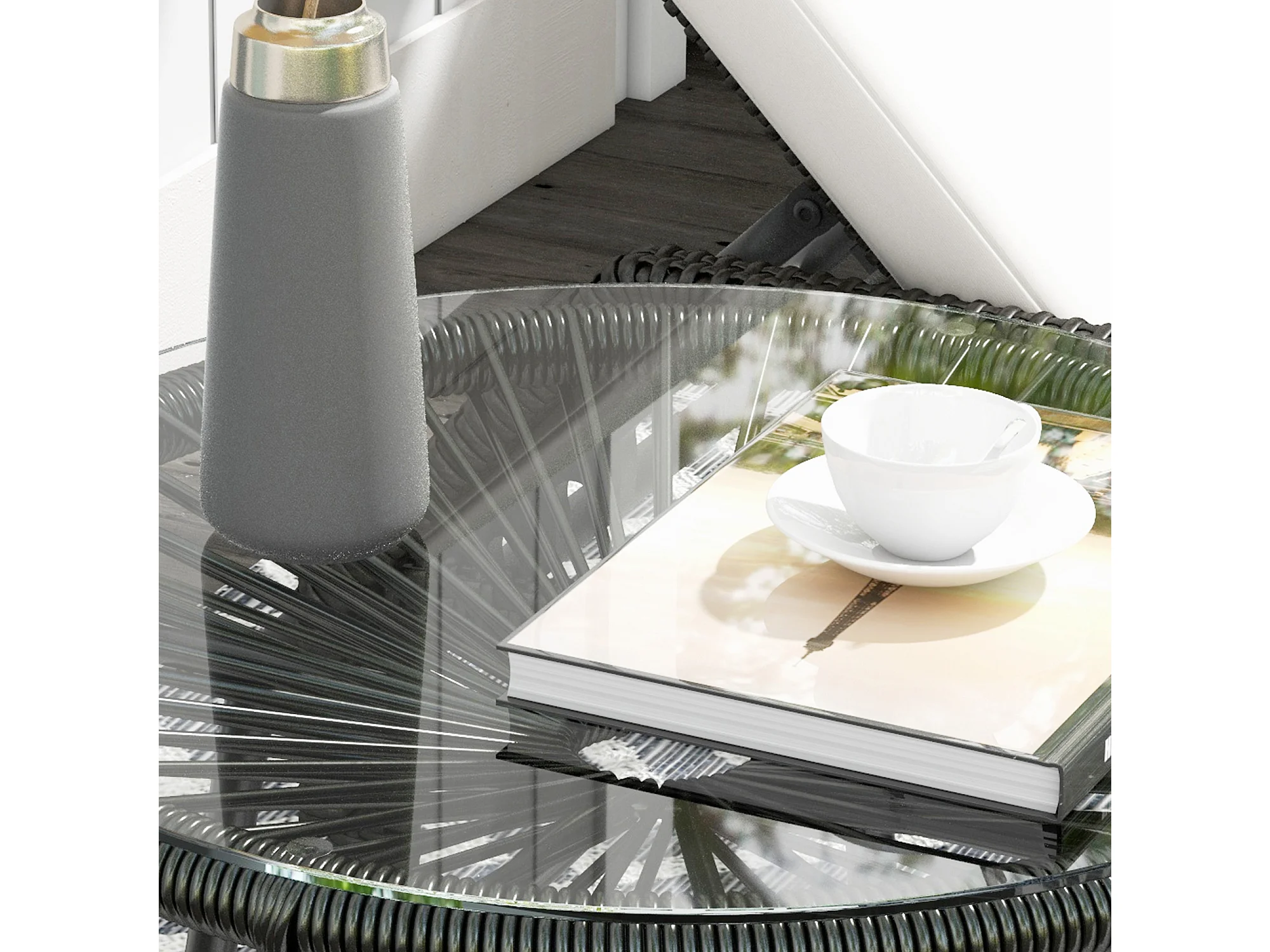 Table basse ronde de jardin en résine aspect rotin métal et plateau verre trempé Ø 50 x 50H cm noir