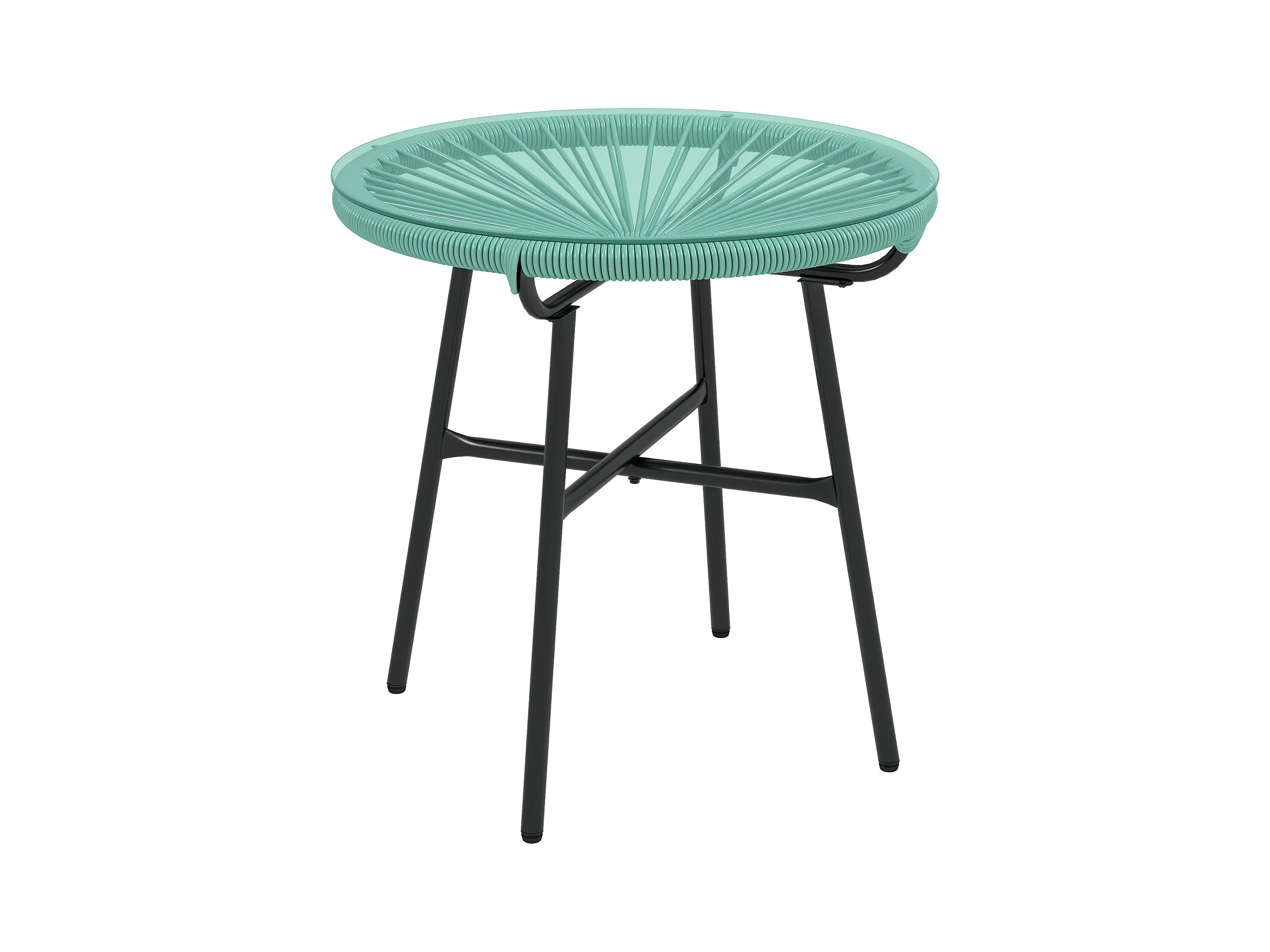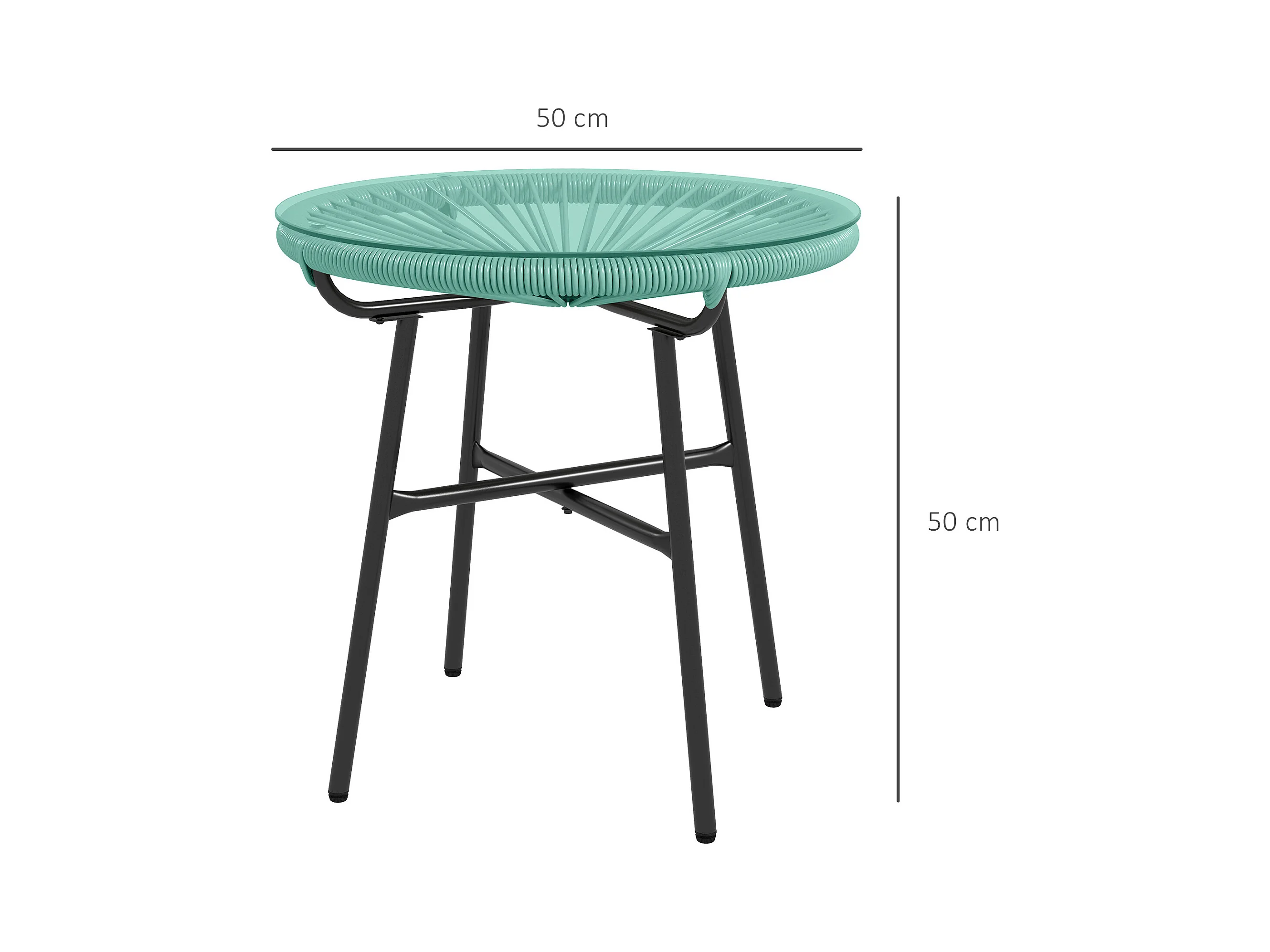 Table basse ronde de jardin en résine aspect rotin métal et plateau verre trempé Ø 50 x 50H cm vert turquoise