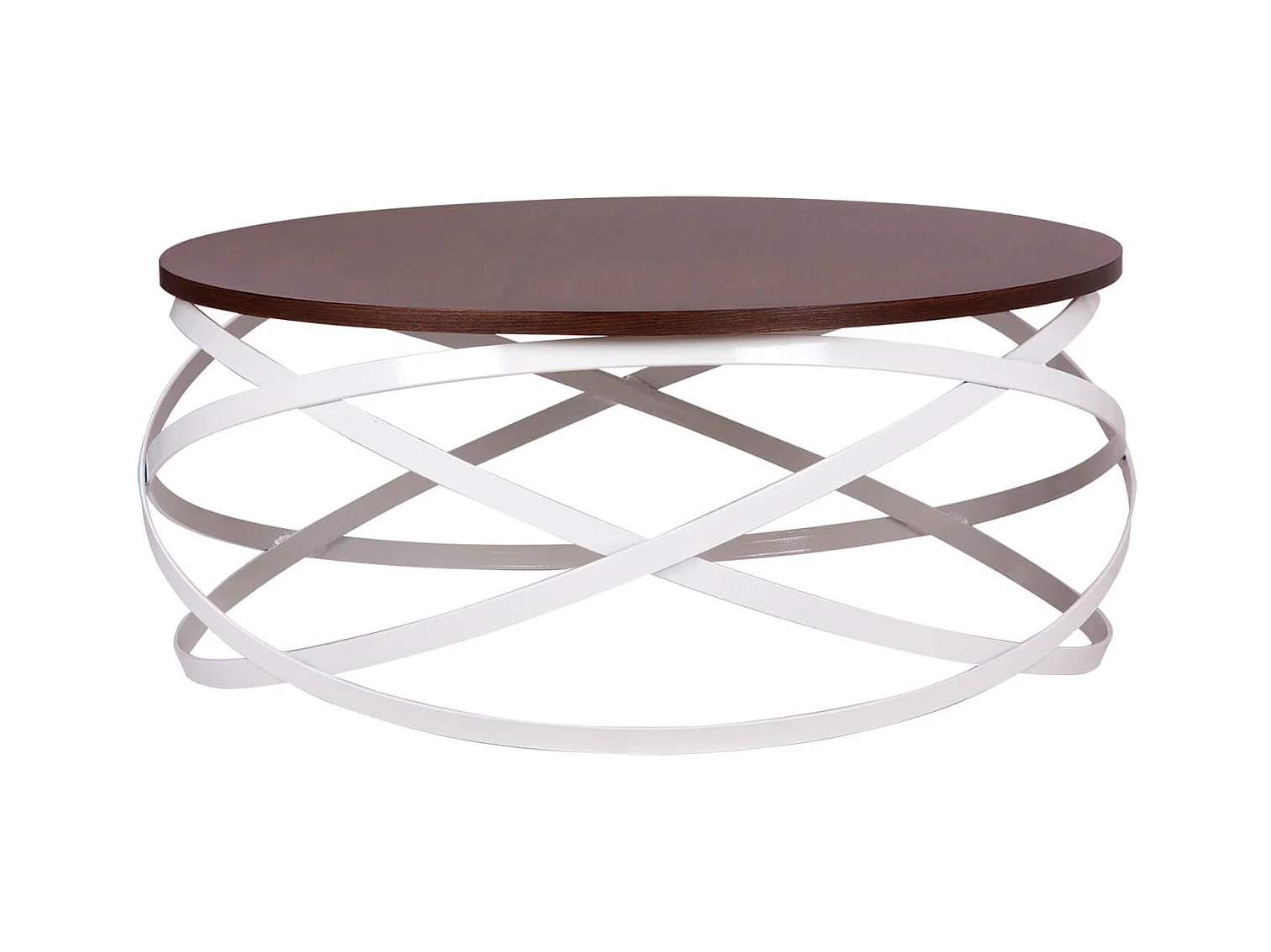 Table basse ronde design bois noyer et métal blanc Klikar 80cm