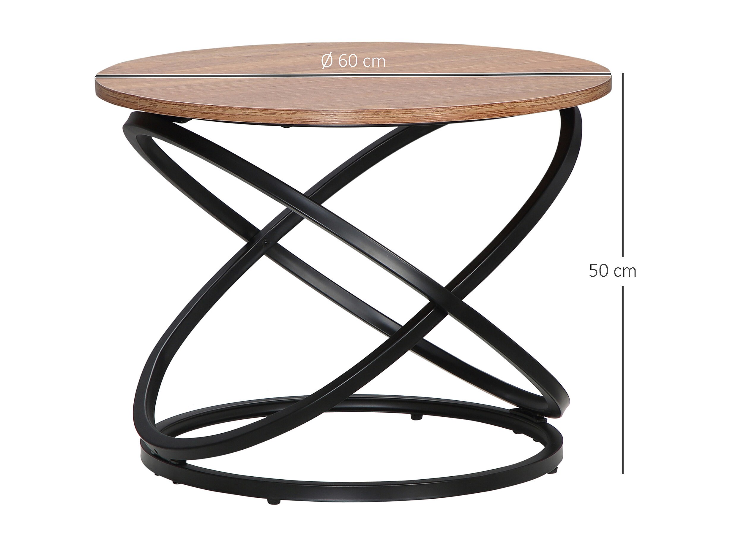 Table basse ronde design industriel néo-rétro Ø 60 X 46H cm acier anneaux noir aspect chêne clair