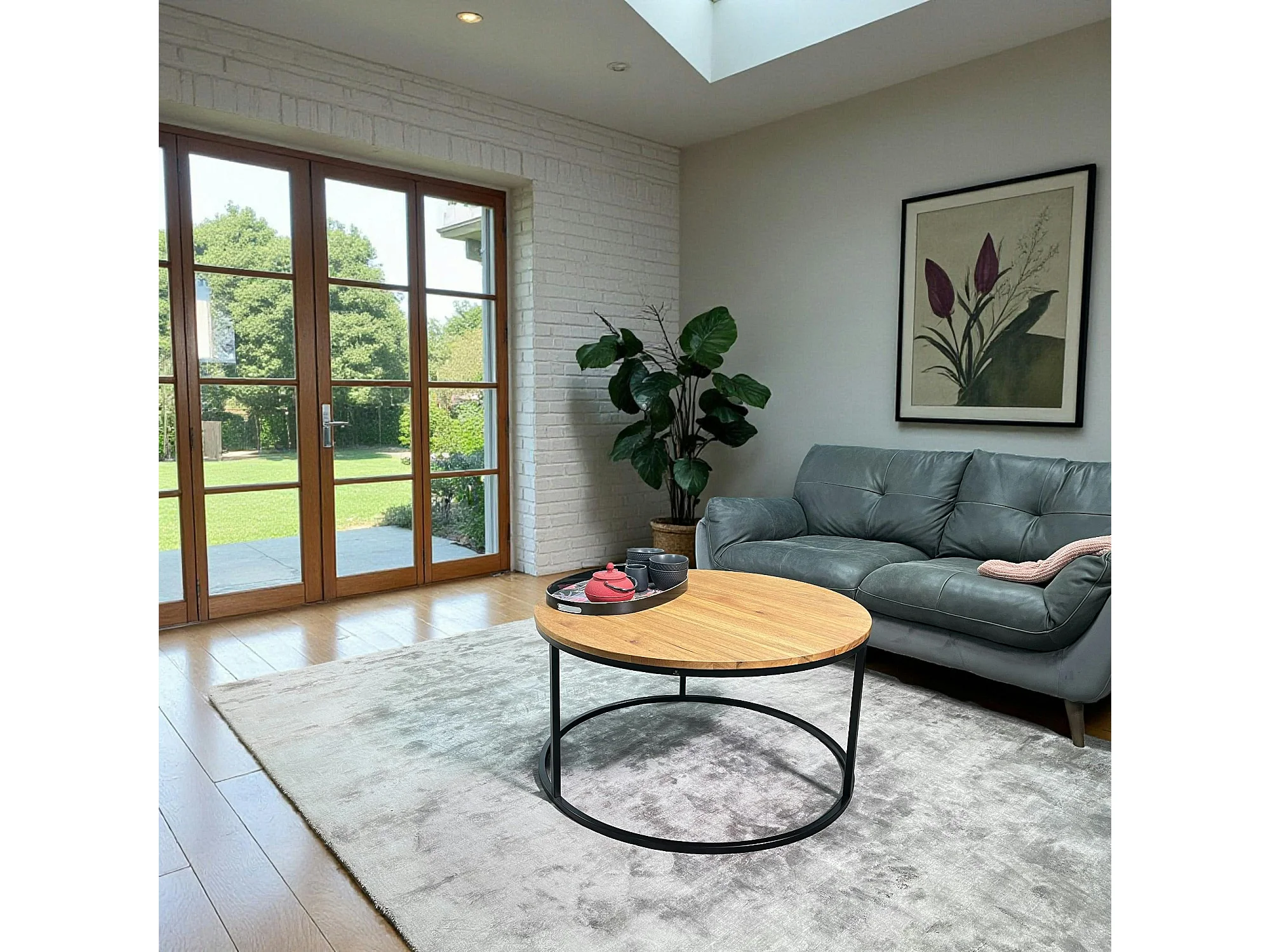 Table basse ronde diamètre 90 cm en chêne huilé PALERME
