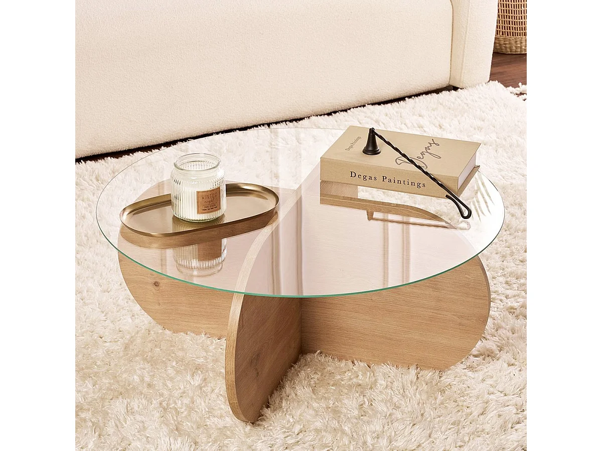 Table basse ronde effet Chêne clair et verre Ø75 cm - Eolia