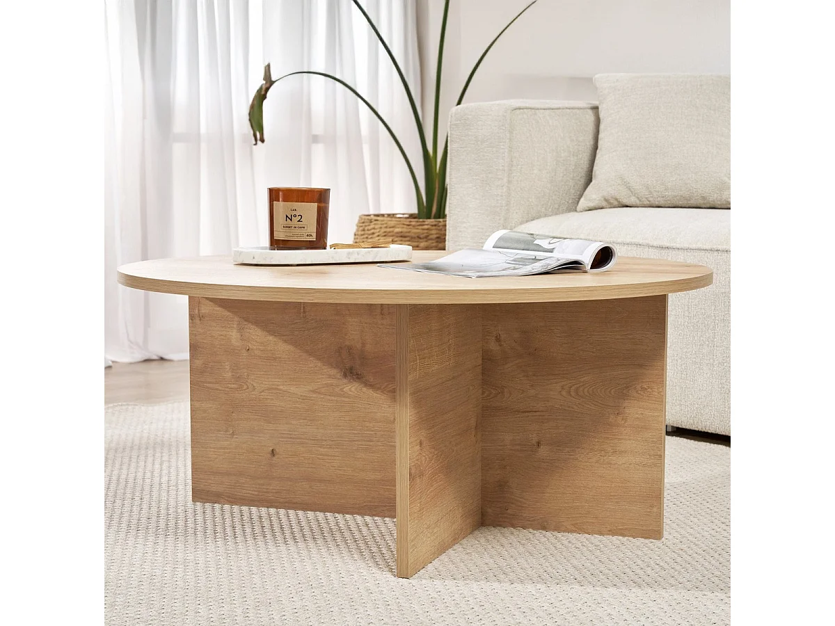 Table basse ronde effet Chêne clair Ø90 cm - Zelis
